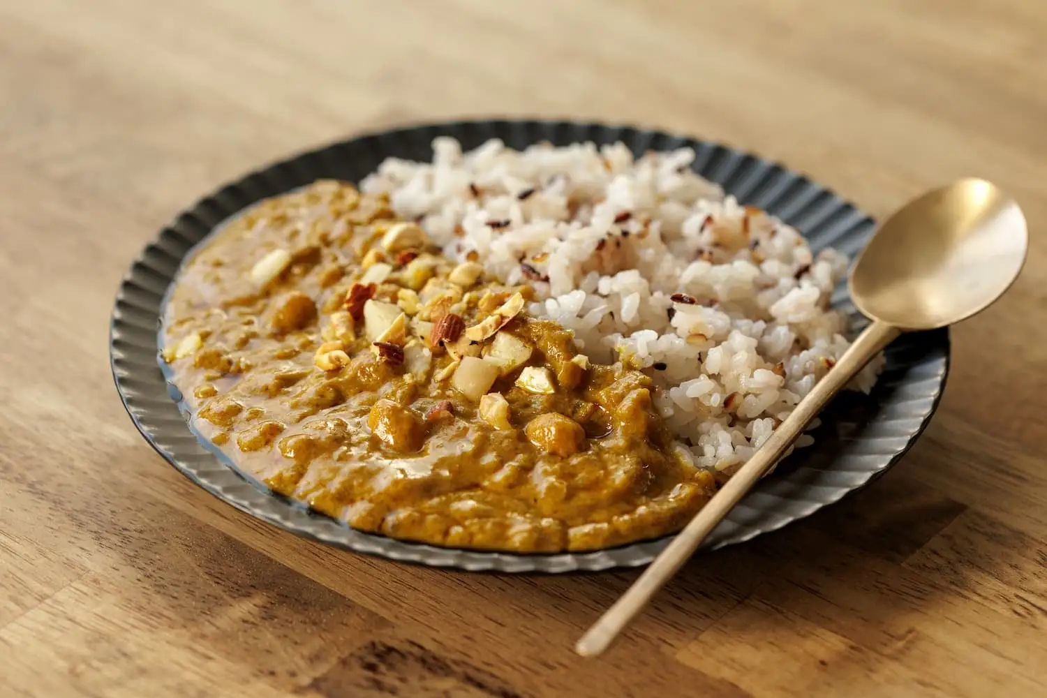 年末年始のお節料理は、豆・根菜・発酵食品といった、実は植物性中心の料理が多い。だからこそ、お節に少し飽きたタイミングで大豆と白みそを使ったヴィーガンカレーという選択は自然だ。