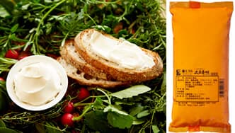 ダイスカットにしてサラダの上にトッピングしたり、温めて溶かしたものをチーズソースとして使ったり。チーズの濃厚で芳醇な香りというよりも、口当たりやまろやかさを追求した商品で、通常のチーズが苦手な方でも楽しめそうな優しい味わいです。