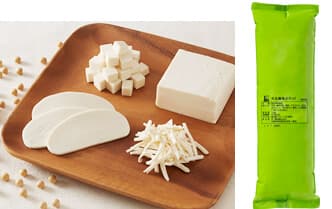 不二製油から発売されている「まめまーじゅ」シリーズの一つに、ブロックチーズタイプがあります。こちらの商品は通常のプロセスチーズに近いセミハードな食感です。