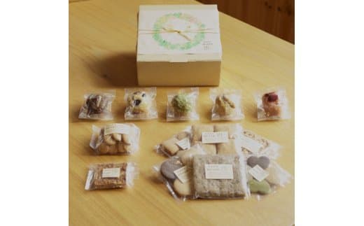 \「菜食料理 pas a pas (パザパ)」の人気クッキーが一度に試せる/ 長野県御代田町で、穀物菜食のコース料理をおもてなしするお店の人気クッキー。もらってうれしい、家族も喜ぶ一品として口コミでも人気です。 〈お届け内容〉 クッキー類(各1袋ずつ 計8個) ・スペルト小麦のお菓子 全粒粉クッキー(4個入り)、ふすまボーロ(計38g)、ゆずジャムフロランタン(1個入り)、玄米コーヒーとピーナツクッキー(4個入り) レーズンクッキー(4個入り)、四葉のクッキー(抹茶、ココア、きな粉、チャイ各1個ずつ計4個入り) ・米粉のお菓子 メープル&ココアの米粉のクッキー(メープル、ココア各2個ずつ4個入り)、雑穀クッキー(4個入り) ケーキ類(以下の中から5種類、各1個ずつ 計5個)※種類はお選びいただけません。 黒ゴマ、きな粉、抹茶プルーン、レーズンアーモンド、ゆずココア、ブルーベリー、 苺ビーツ、りんごくるみ、かぼちゃ千石豆、桜あん、よもぎあん★寄付の詳細はこちら★
