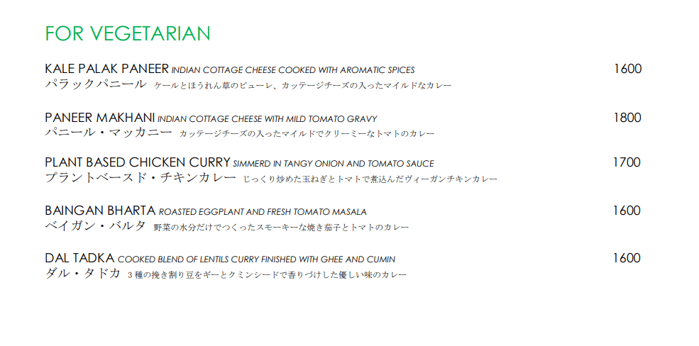 アラカルトメニューには、ヴィーガンメニューのご用意がありましたので、ぜひ訪れてみてください。