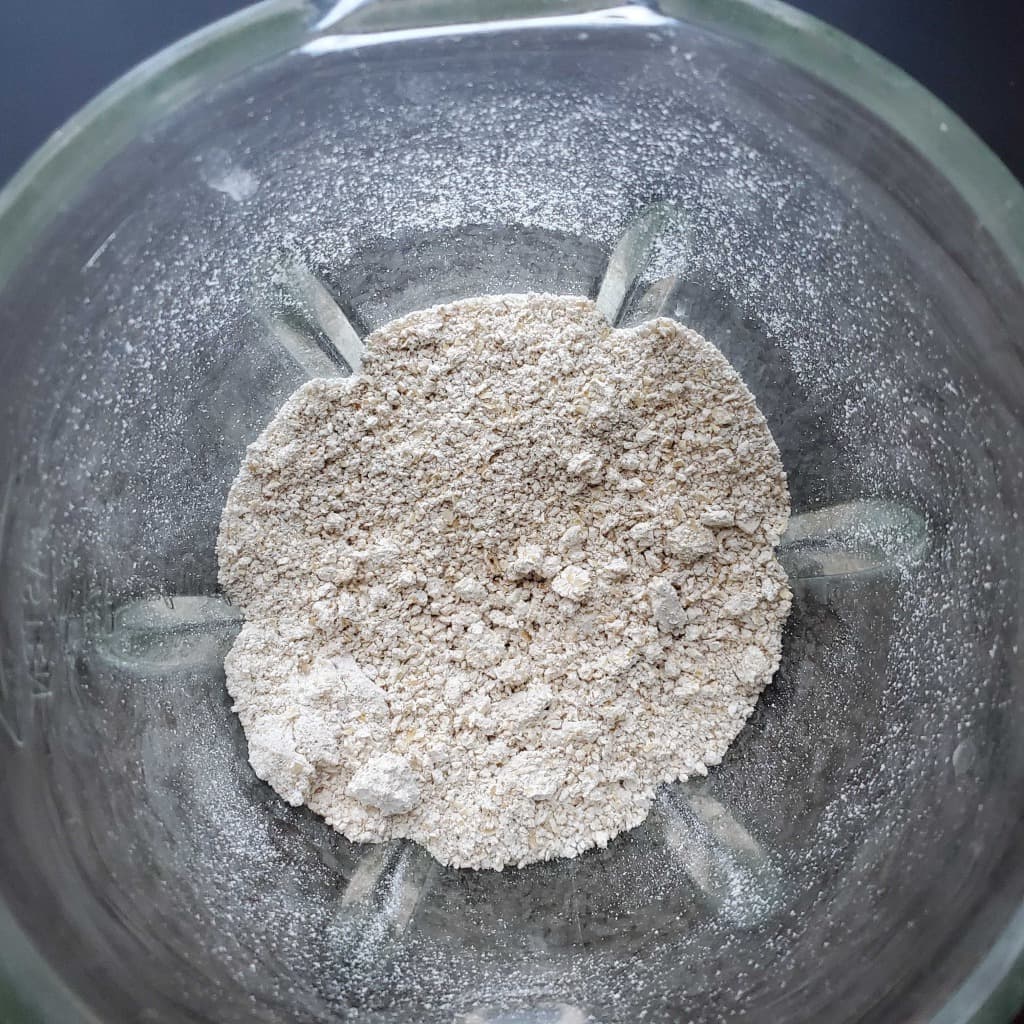 オーツ麦をミキサーにかけてオートフラワー(オーツ麦粉)を作ります。オートミールそのままでもOKです!