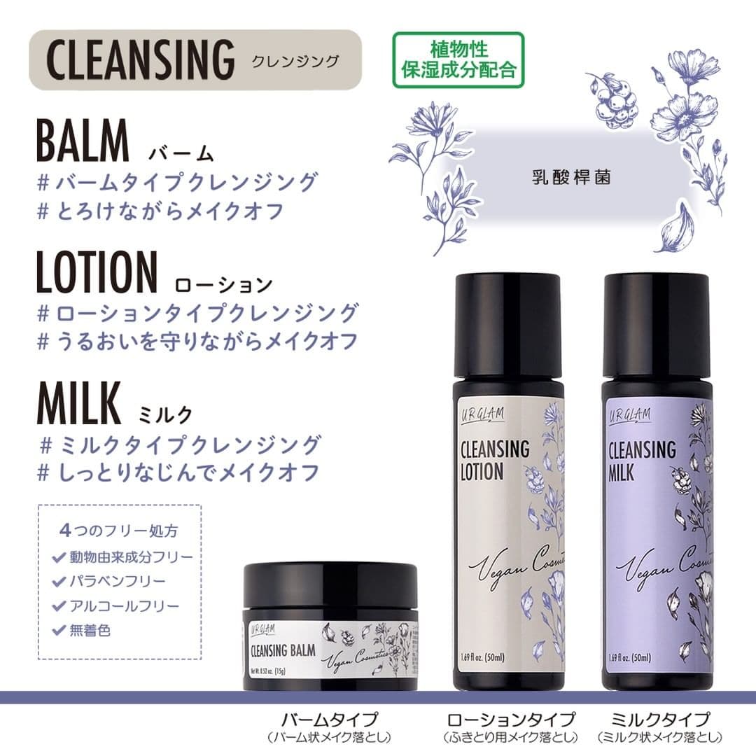 ダイソーのヴィーガンコスメ(スキンケア)は、100円ではなく330円(税込)で展開されています。 3種類のクレンジング(バーム、ローション、ミルク)があり、肌状態、お好みのテクスチャーで選べるのがポイントです。