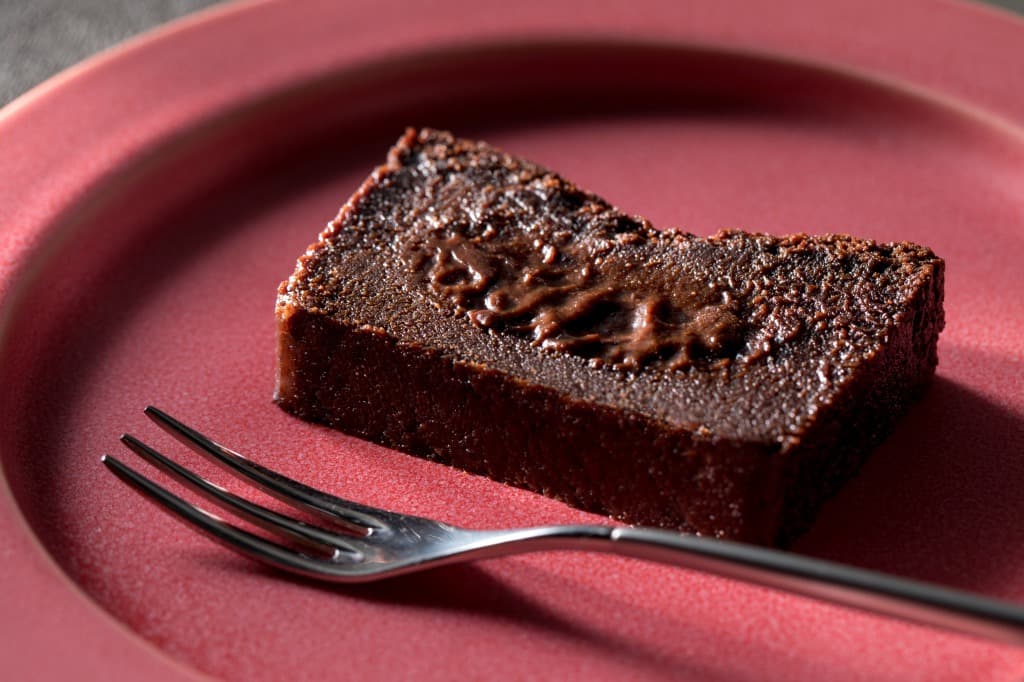 オンラインでも販売している、「生食感の濃厚ガトーショコラ」は、濃厚なカカオのインパクトと口溶けが特徴の製品です。外側はしっとりなめらかな舌触り。内側はとろりとクリーミーな半熟食感。2つの食感が楽しめる2層仕上げています。また、厳選した玄米粉、アーモンドミルク、オーガニックシュガーなどヘルシー素材だけで作り上げました。