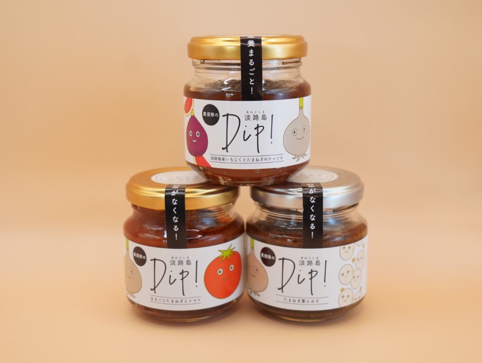 淡路島Dip!3種セット(淡路島産いちじくと玉ねぎのチャツネ、玉ねぎ葉と味噌、玉ねぎとトマト) ¥1,880(税込)/てまひまセレクション