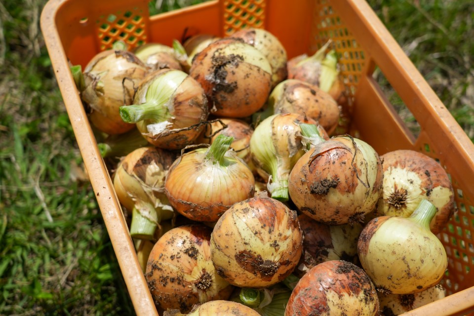淡路島の名産といえば玉ねぎ。何度も訪れる親子も多い。