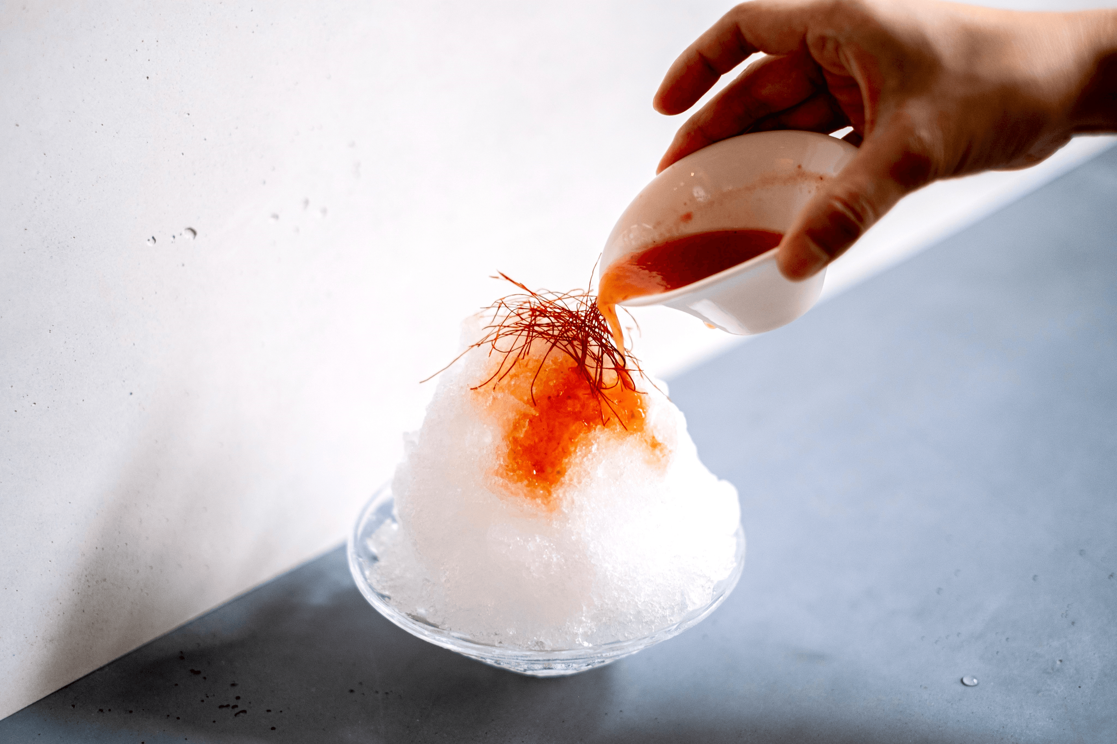 トマトと柚子胡椒のピリ辛ソース&豆乳トマトクリームソースの新感覚かき氷