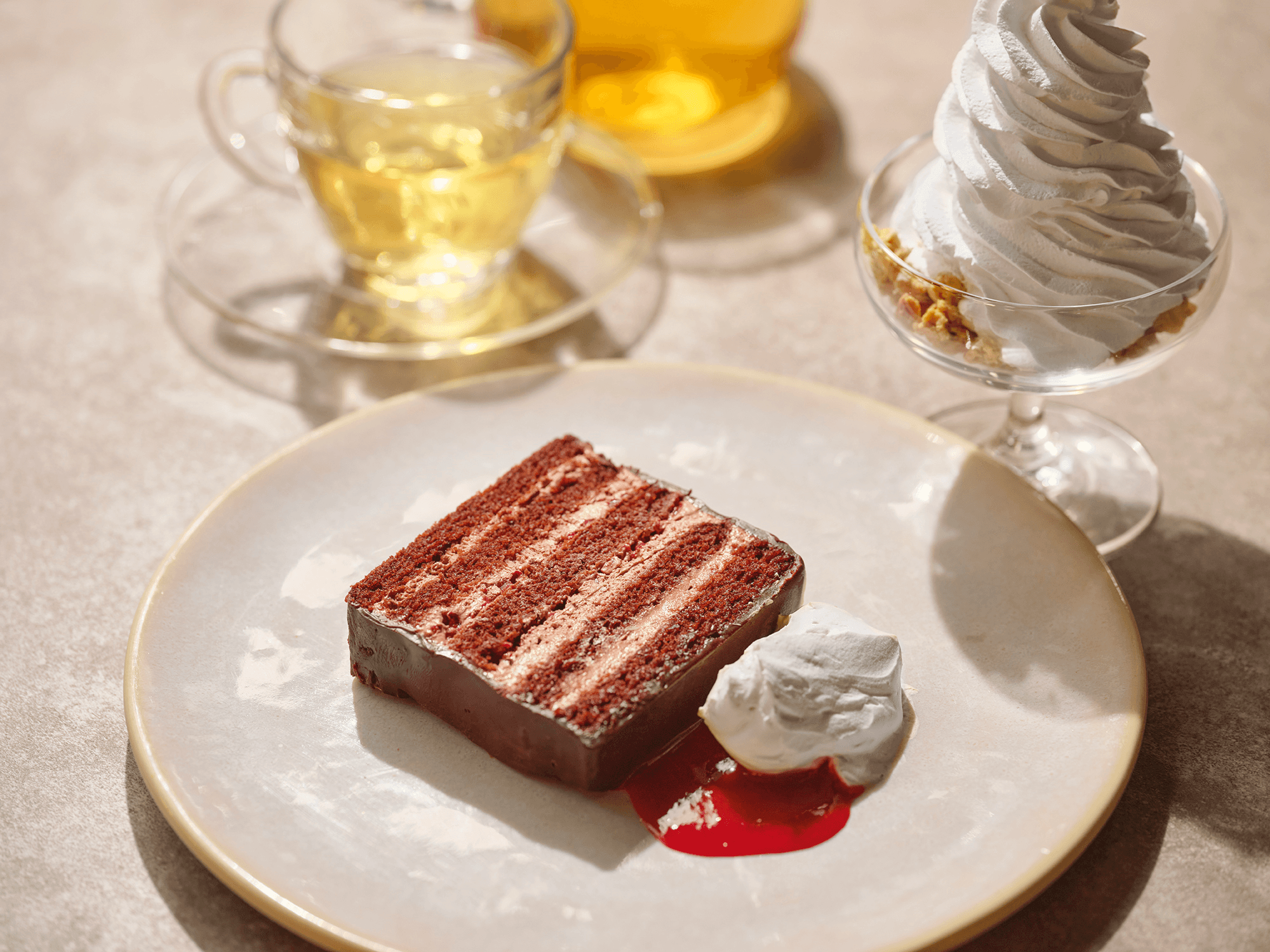 またスイーツはすべて植物由来の食材のみを使用したケーキやソフトクリームサンデーをご用意。コーヒーやハーブティーとともに、罪悪感なく満たされる素敵なティータイムをお過ごしいただけます。