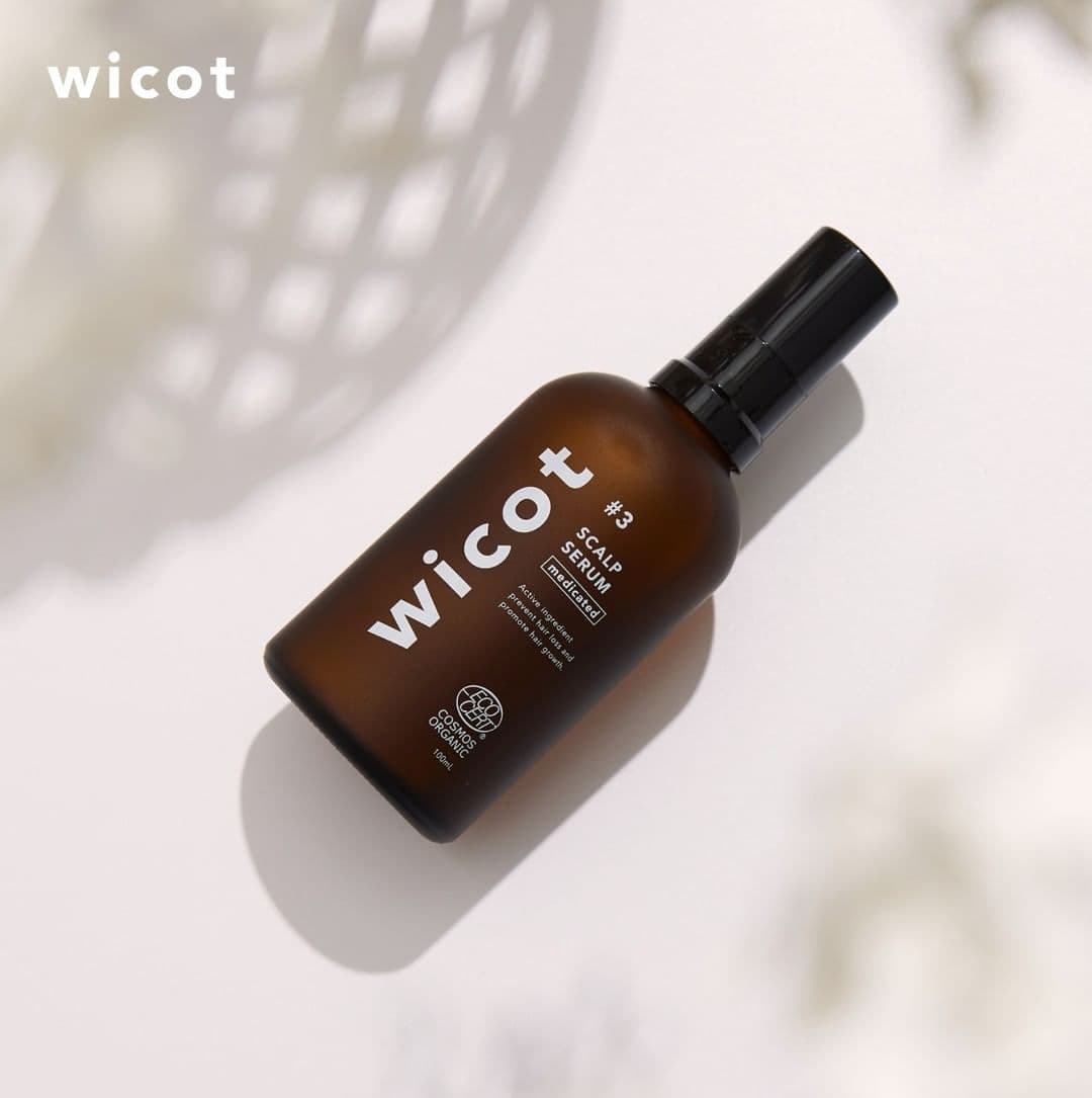 頭皮へのいたわりと育毛効果を兼ね揃えたスカルプセラム(薬用育毛剤)を中心に、厳しい基準をクリアしたCOSMOS ORGANIC認証を取得済みのスカルプ&ヘアケアブランドです。商品ラインナップについては、頭皮の状態や髪質に合わせて2つのタイプ(しっとり・すっきり)から選べる「wicotスカルプ&ヘアシャンプー」「wicotスカルプ&ヘアトリートメント」とブランドを代表する「wicot薬用スカルプセラム」の5SKUです。