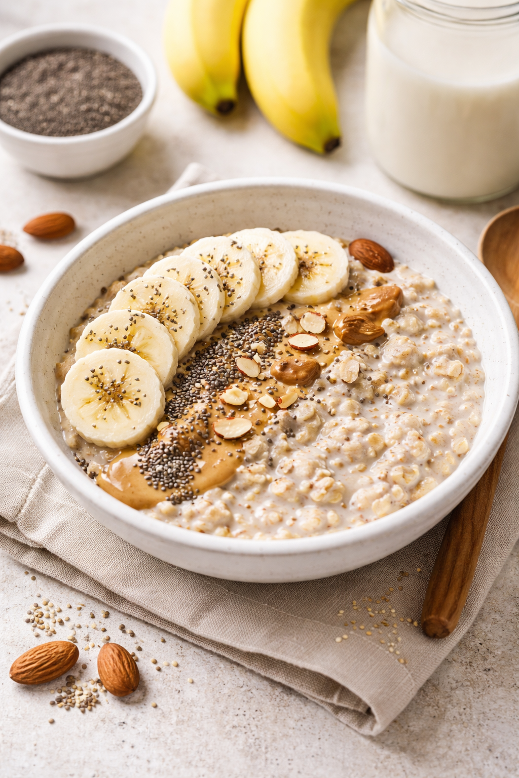 ・オートミール+豆乳+チアシード+バナナ
