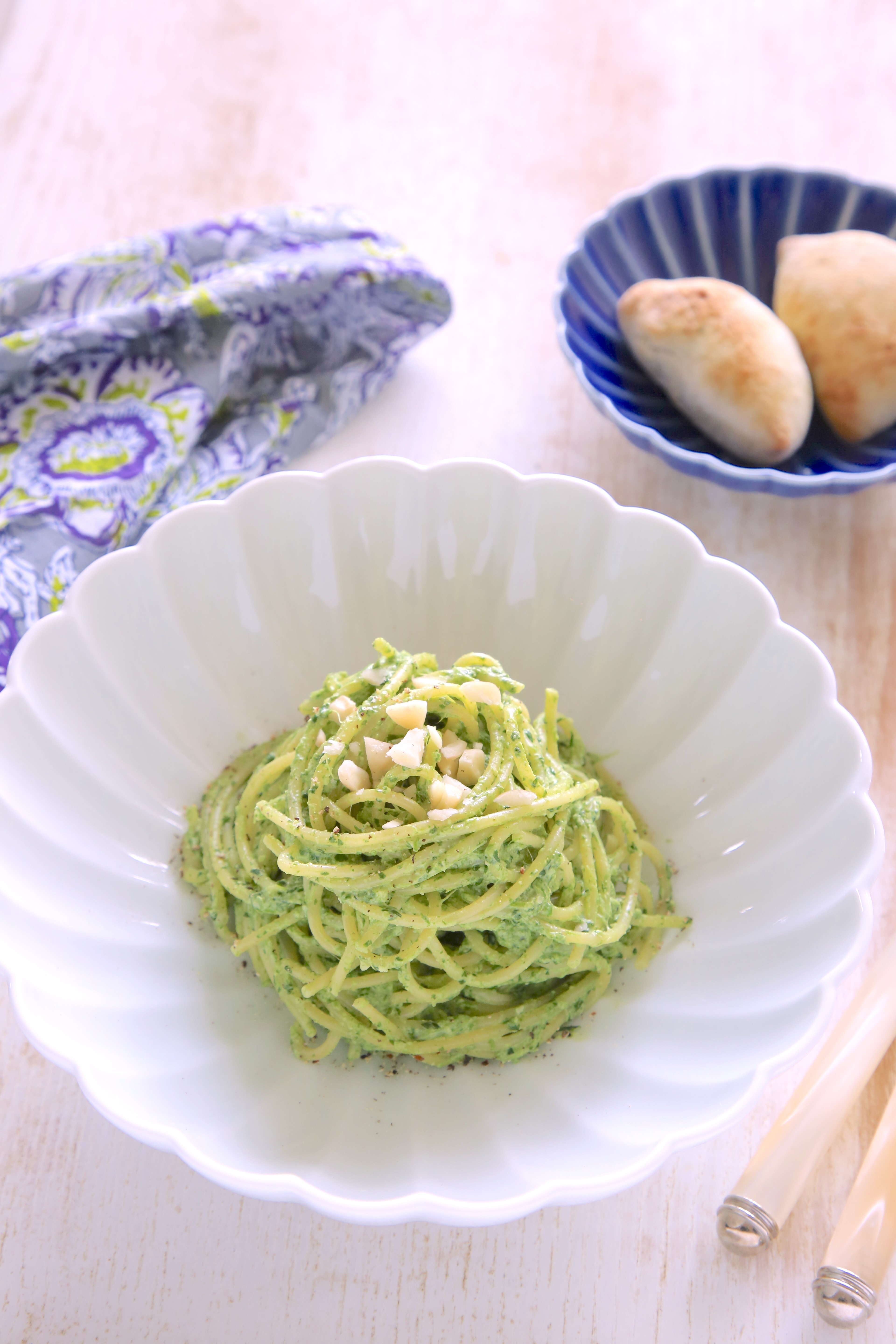 ③パスタを推奨時間どおりに茹で、お湯を切って2のペーストと和える。ペーストがかたい場合はオリーブオイルを少し足す、牛乳などで少しのばすなど、お好みのかたさに調整を。