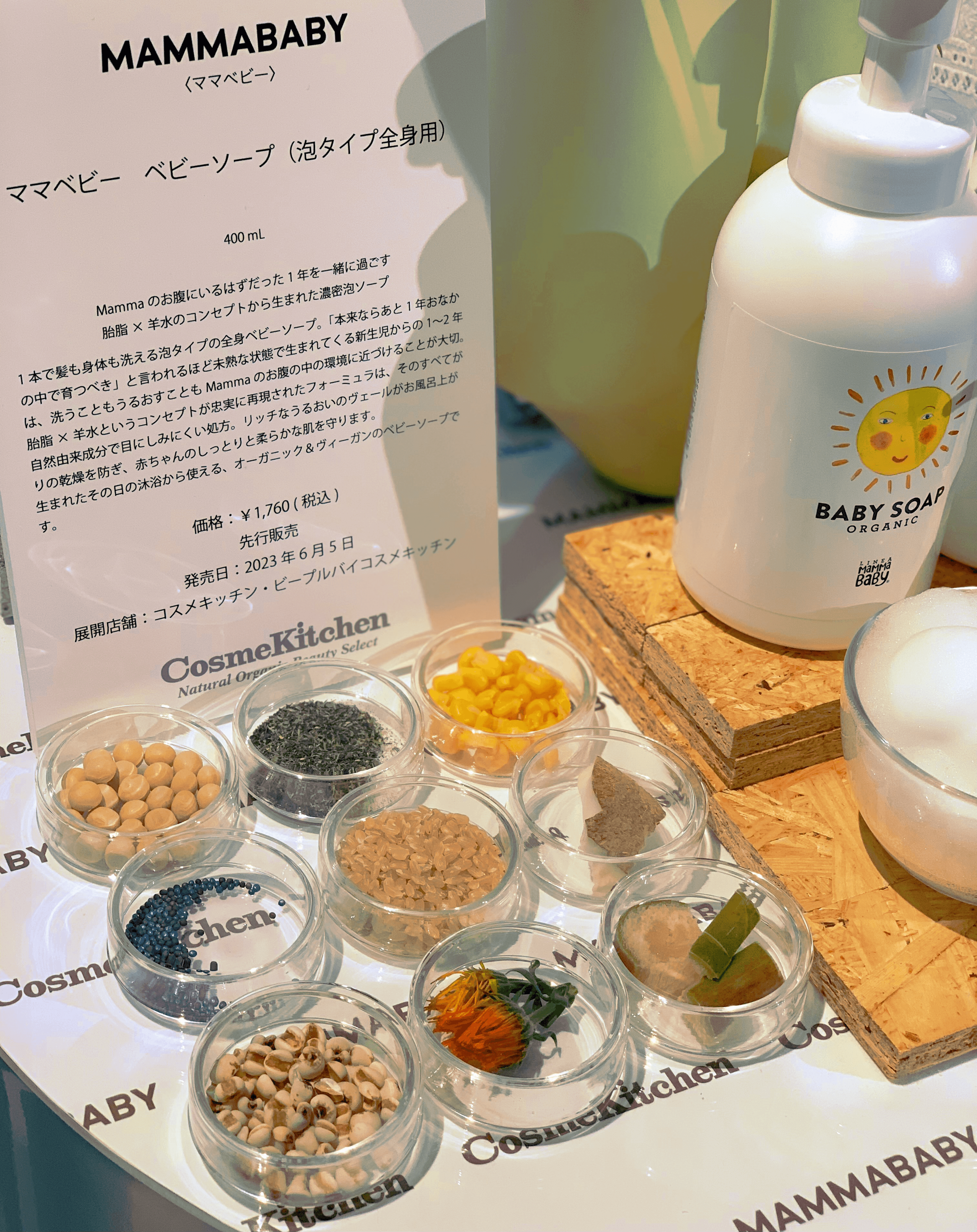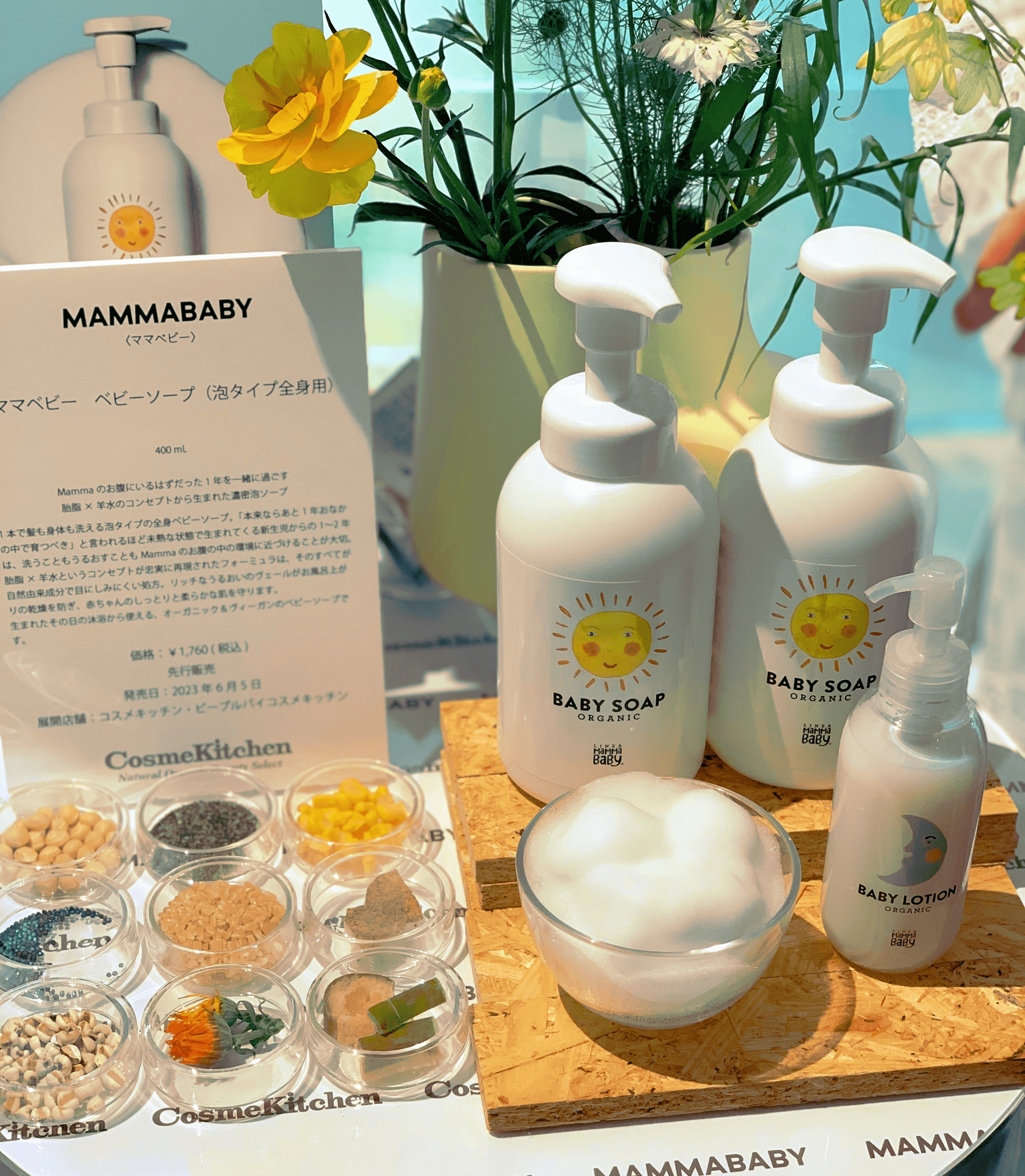 今回お披露目になった新製品は、1本で髪も身体も洗える泡タイプの全身ベビーソープ。泡タイプにするのがとても難しく、開発まで数年かかったとのこと。これまでリキッドタイプのベビーソープに加え、人気になること間違いなし。