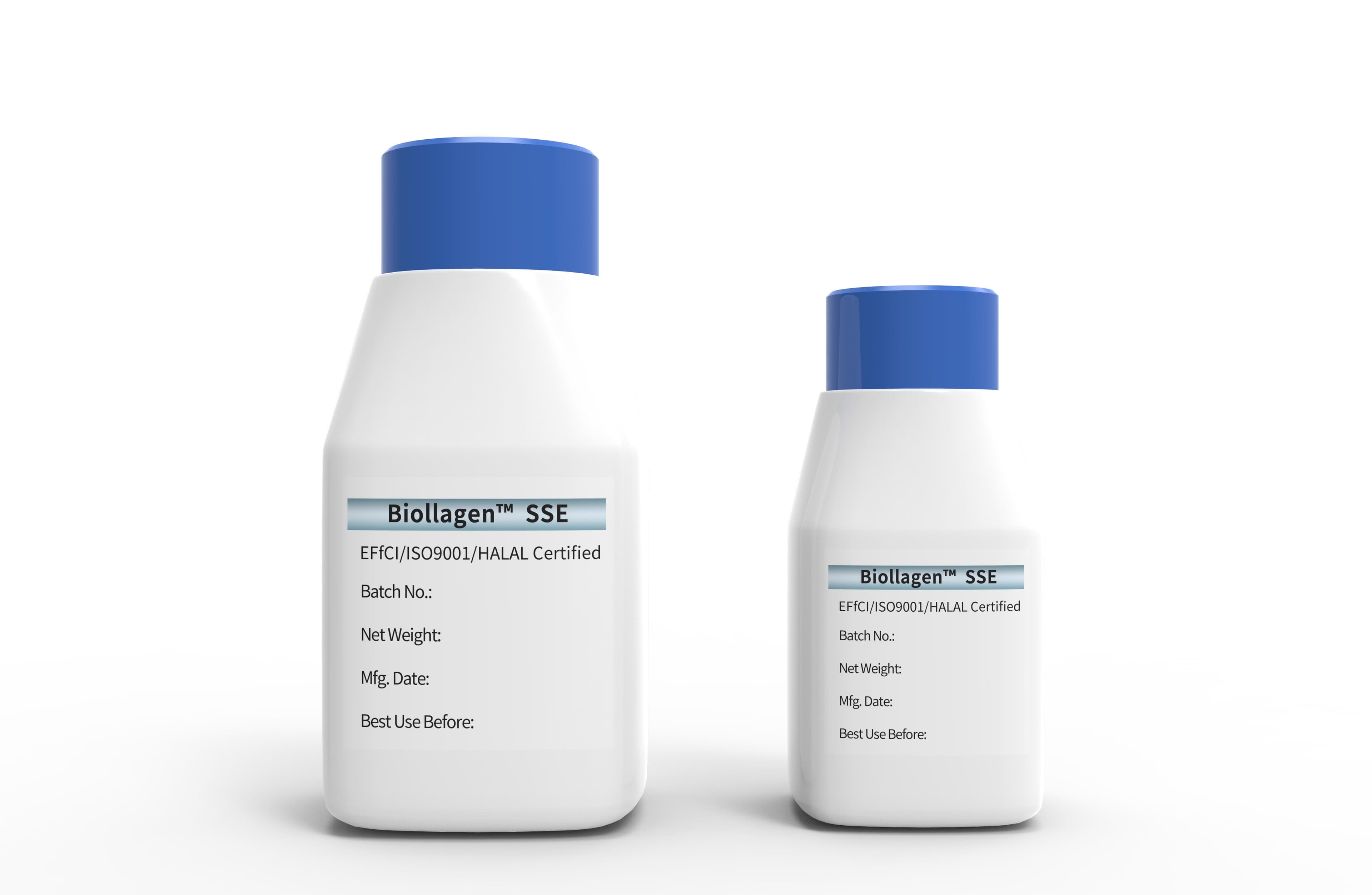 はい、「コラーゲン」です。美容効果としては「肌に潤いや弾力を与える」ことが認められ数多くの化粧品に配合されています。完成したヴィーガン認証済のコラーゲンは、通常のコラーゲンと比較すると分子量が小さく独特なニオイがないのが特徴です。