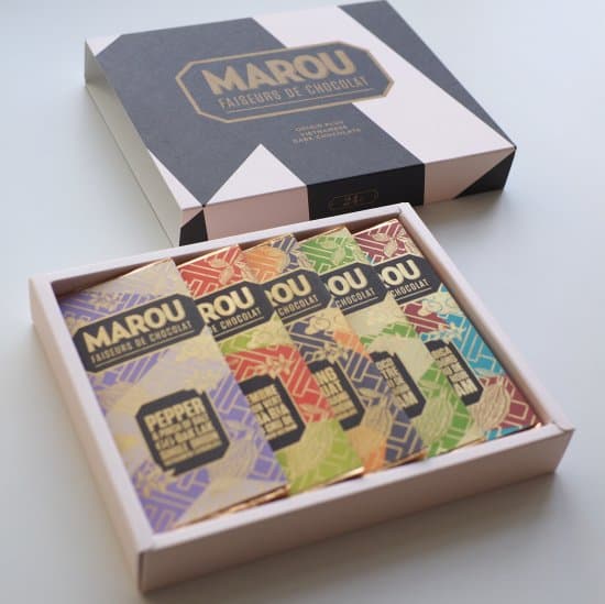 MAROU(マルゥ)は、フランス人のサミュエルとヴィンセントにより2011年に創業された、ベトナムで初めてのbean to barチョコレートメーカー。MAROUのチョコレートは、ゆっくり時間をかけて焙煎を行い、保存料や添加物などは使用せず、産地ごとのカカオ本来の特徴的なフレーバーを際立たせています。彼らは品質のいいカカオを作るため、ベトナムのカカオ農家への教育や設備サポートなども行ない、常に生産者との関係づくりを大切にしている。