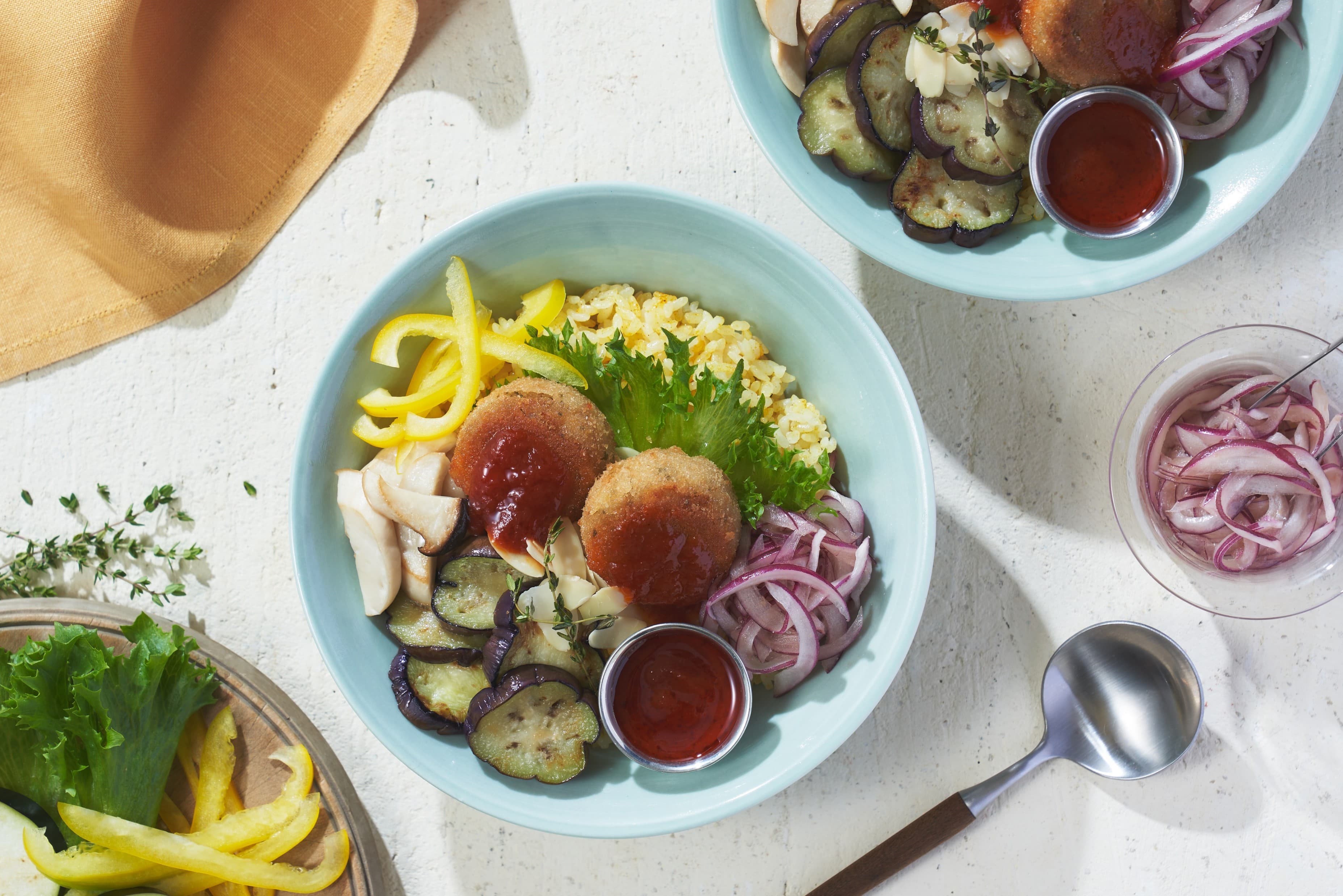 野菜と植物性たんぱく質たっぷりのライスボウルを、ヘルシーな夕食メニューに