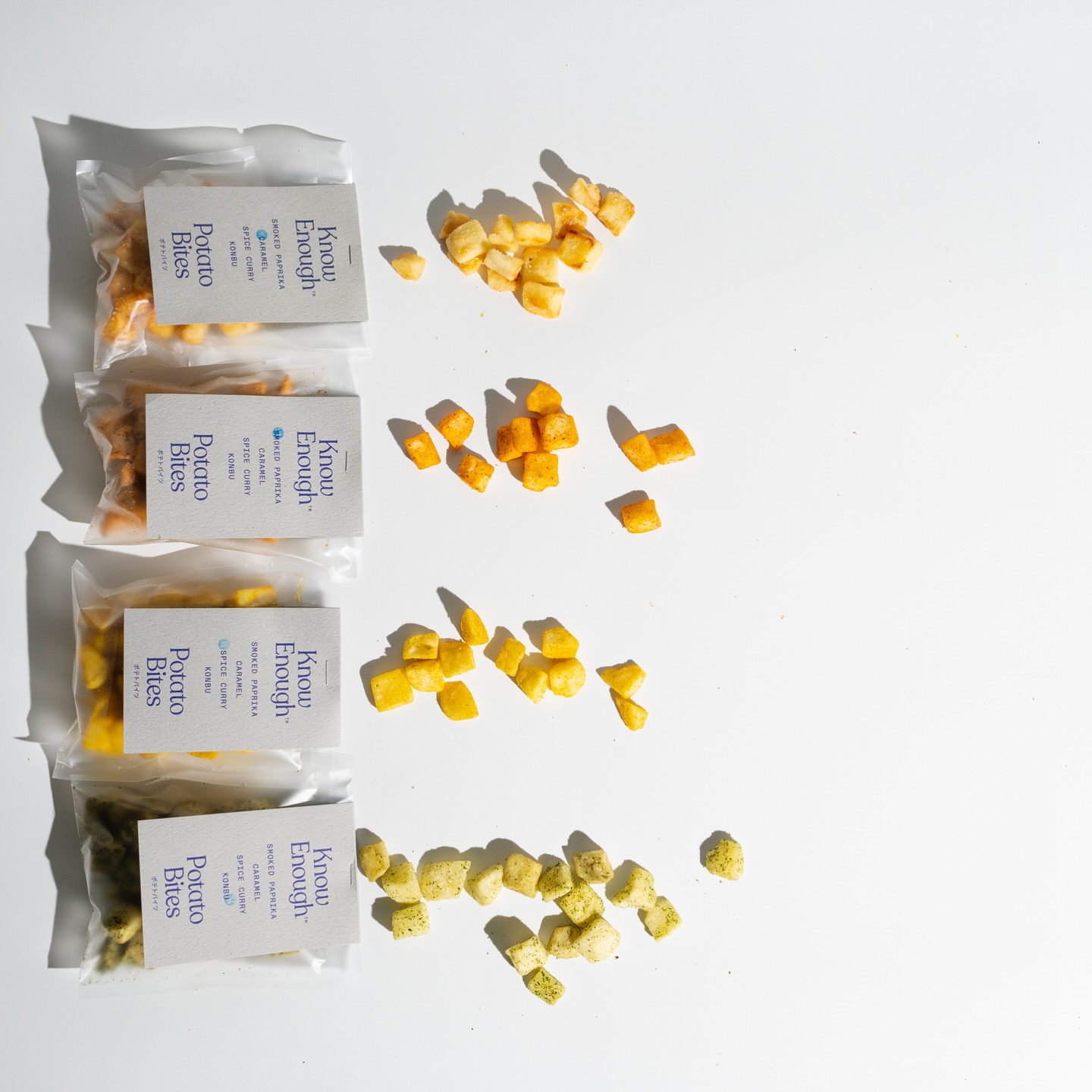 KnowEnoughは、北海道美唄市で誕生したヴィーガンスイーツブランド。ブランド名の「Know Enough(足るを知る)」は、“ないものではなく、すでにあるものに気づく”という哲学から名付けられています。