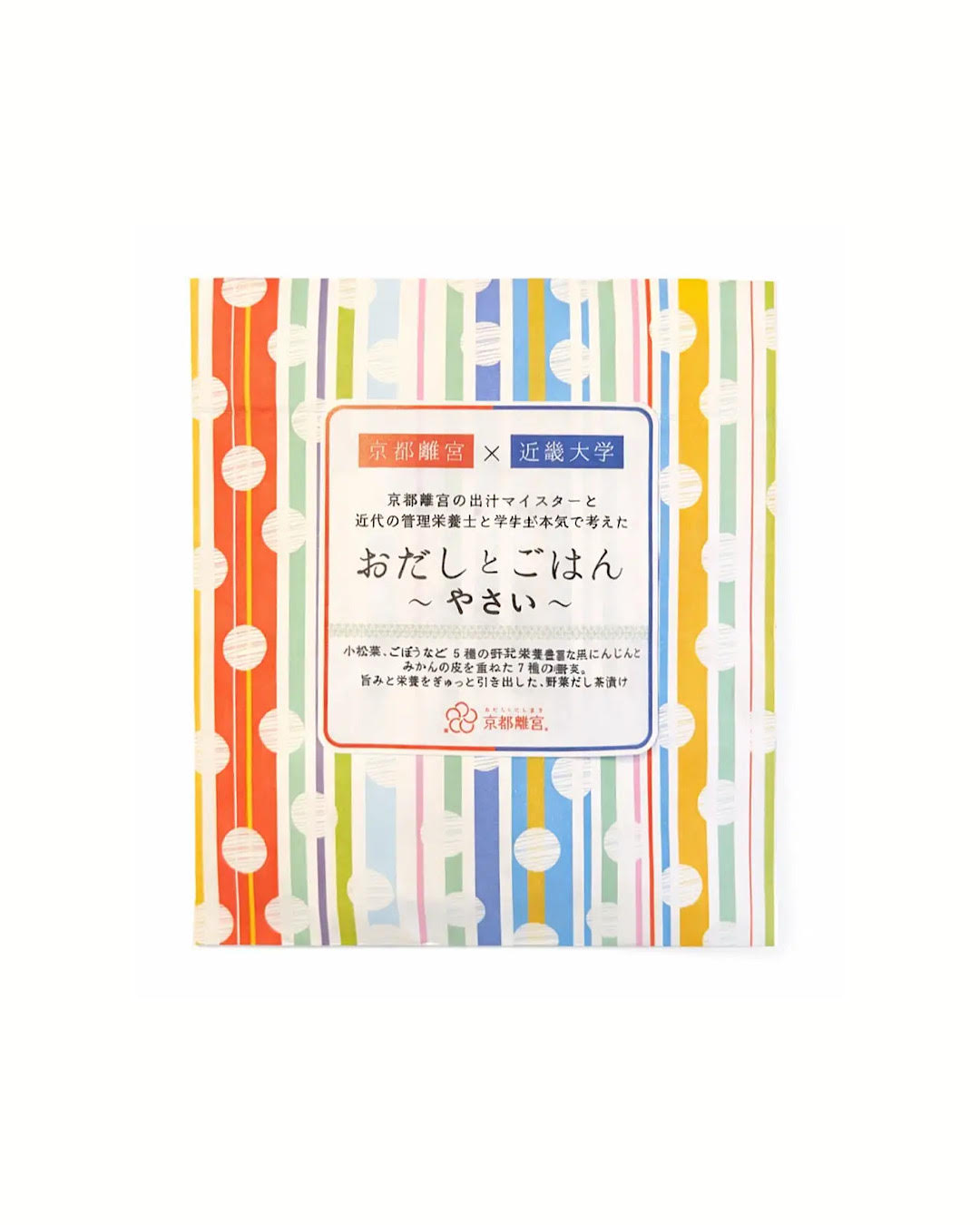 そんな京都離宮と近畿大学の共同開発によって生まれたのが、「おだしとごはん ~やさい~」。出汁のプロと、栄養研究の知見を掛け合わせることで、美味しさだけでなく、日常的に取り入れやすい健康食として設計されています。