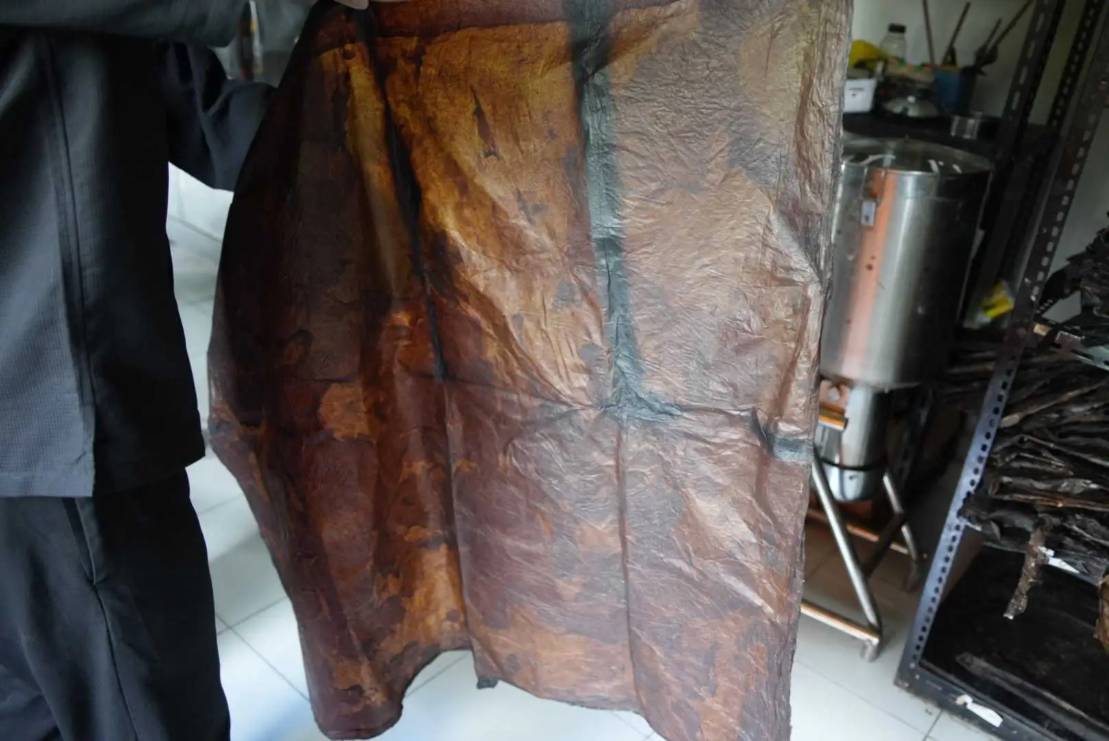 例えばインドネシアの研究企業が開発する素材「M-Tex」は、コーヒー生産時に発生する外皮を栄養源として発酵させ、セルロースナノファイバーを生成。数週間かけて耐久性のあるシートを形成し、革素材へと加工されます。