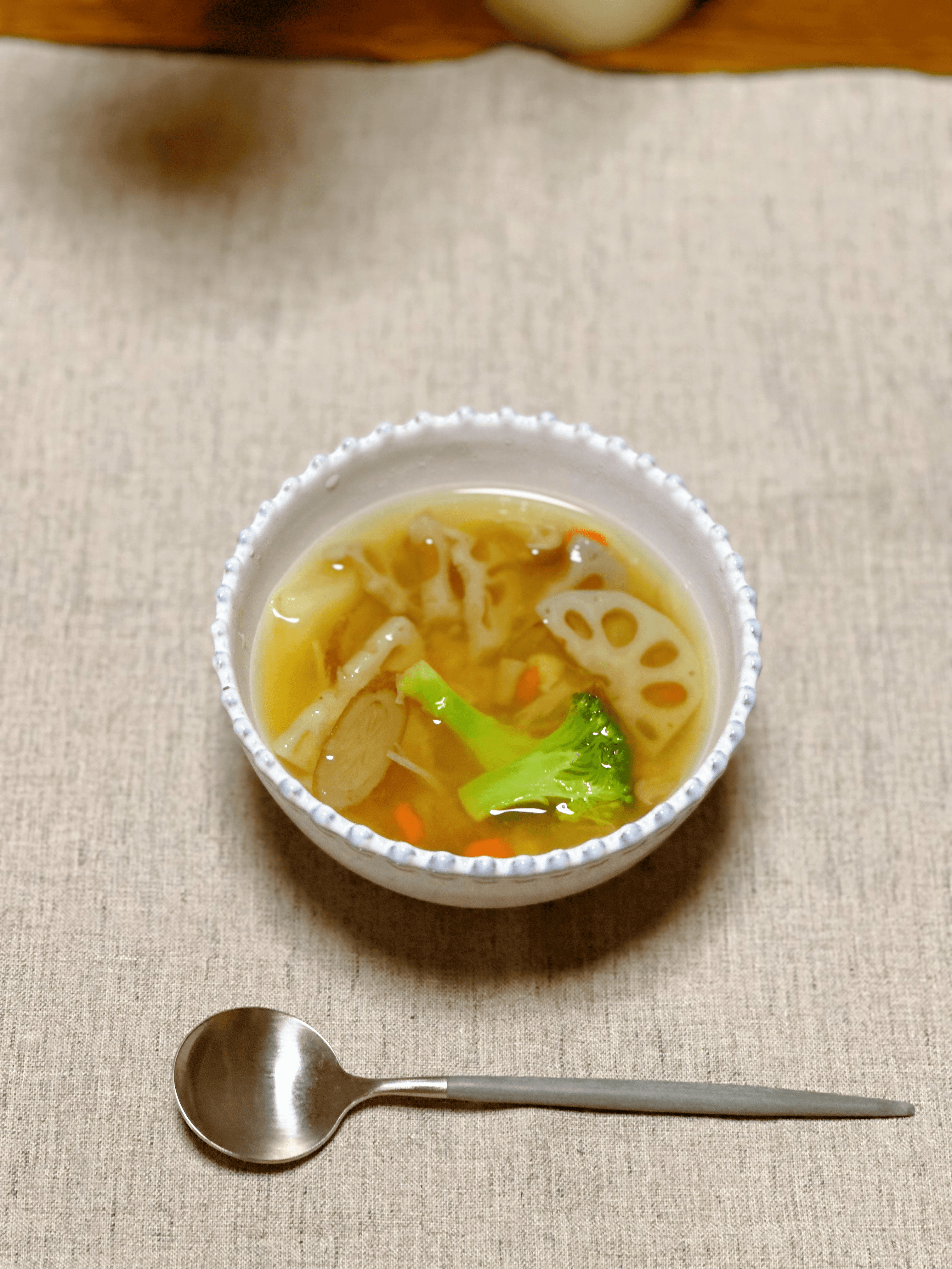 腸内環境と肌を整える「根菜とハトムギの生姜スープ」