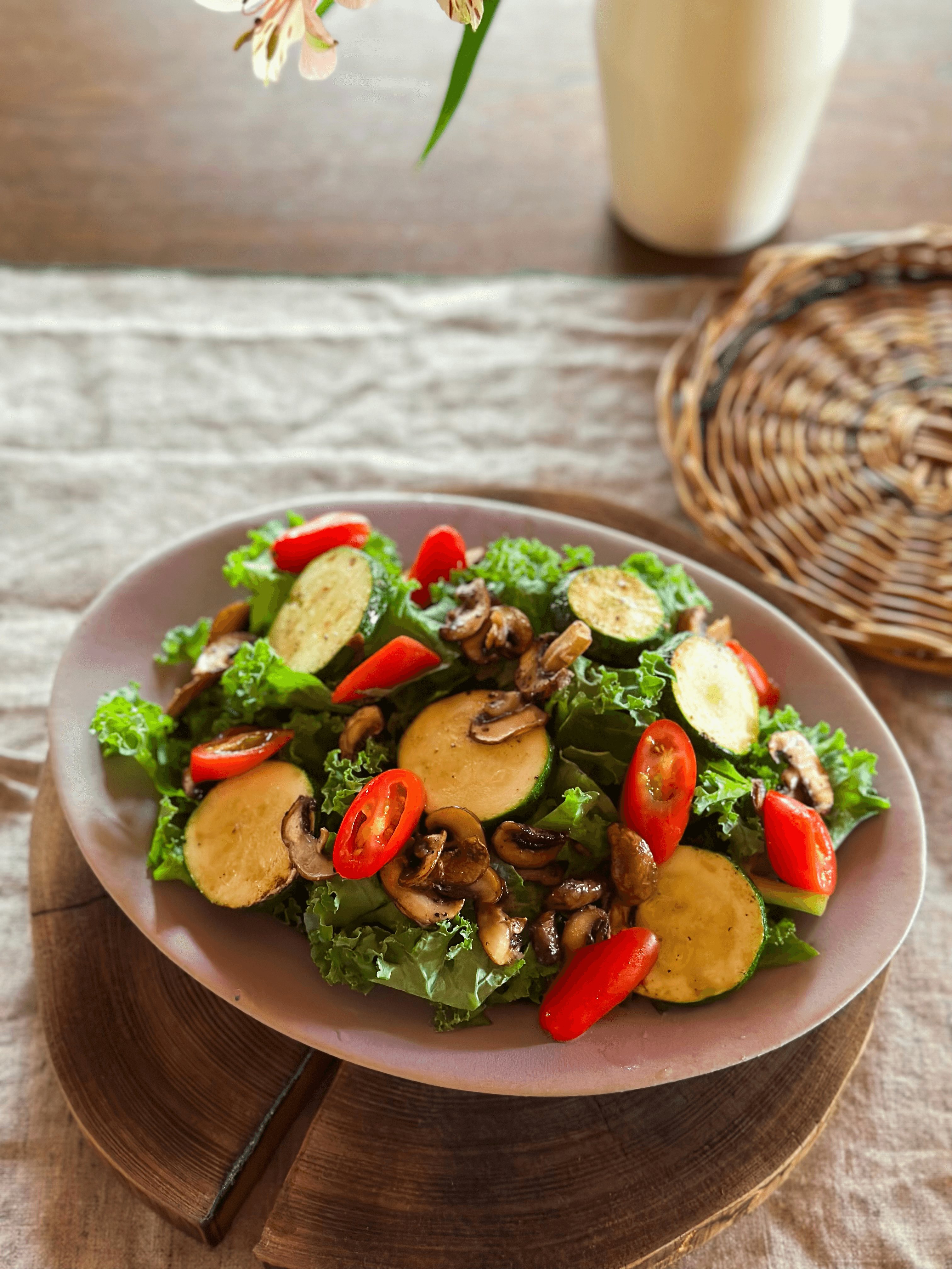 むくみを改善しカラダの流れを整える「ケールとマッシュルーム・ズッキーニのサラダ」