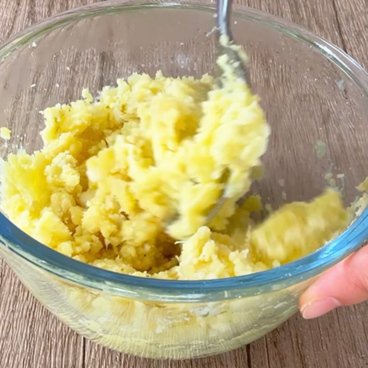 湯を捨て、フォークでつぶします。メープルシロップと植物油を加え、よく混ぜてなめらかに。