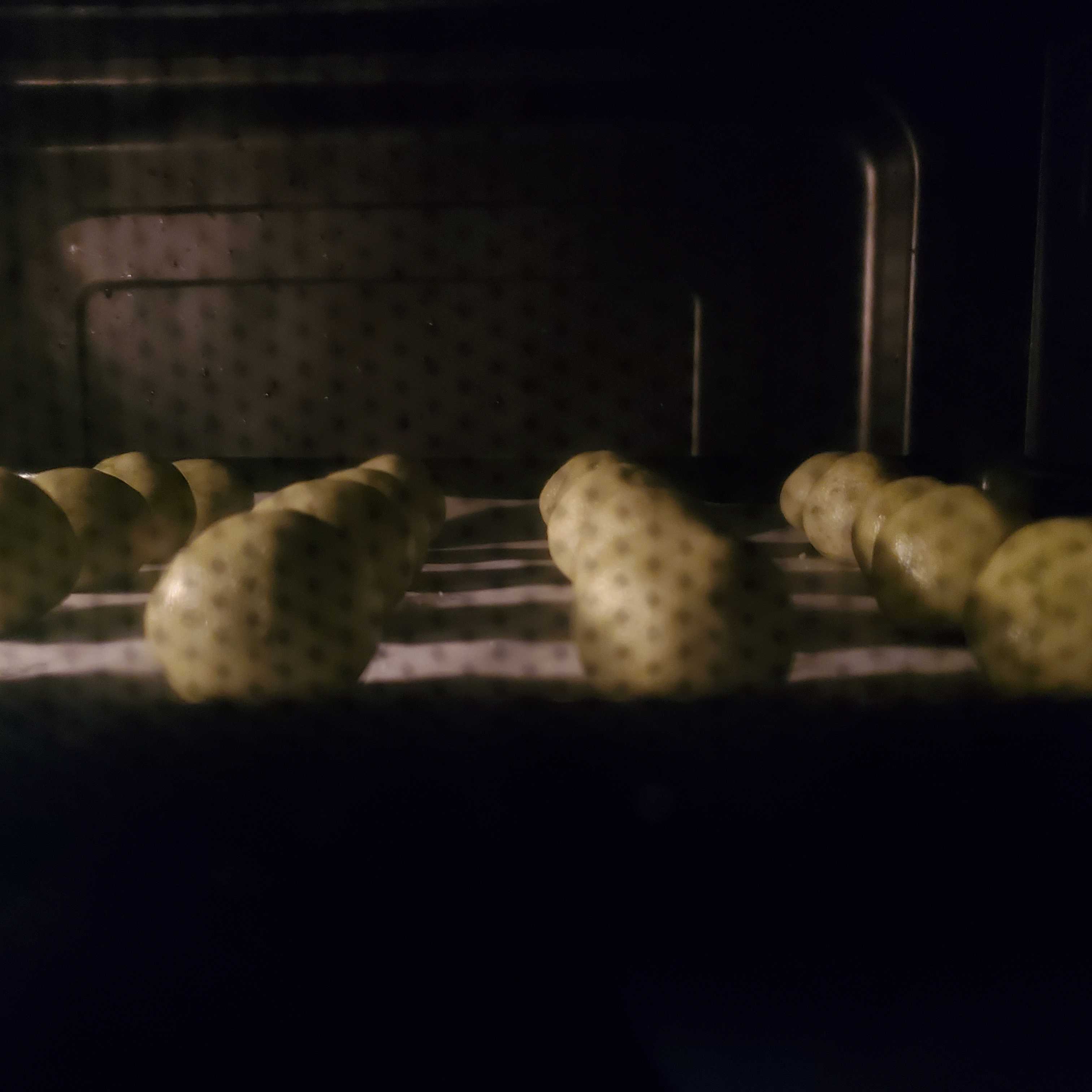 どうしても生地がまとまらない場合はオイルを少量ずつ足してください。このレシピで生地がまとまらないことはないと思いますが、豆乳などの水分で生地をまとめてしまうとスノーボールになりません。試しにオイルを減らして豆乳を加えて作ってみましたが、外側がガリガリで中が生焼けの美味しくないクッキーが出来上がりました。
