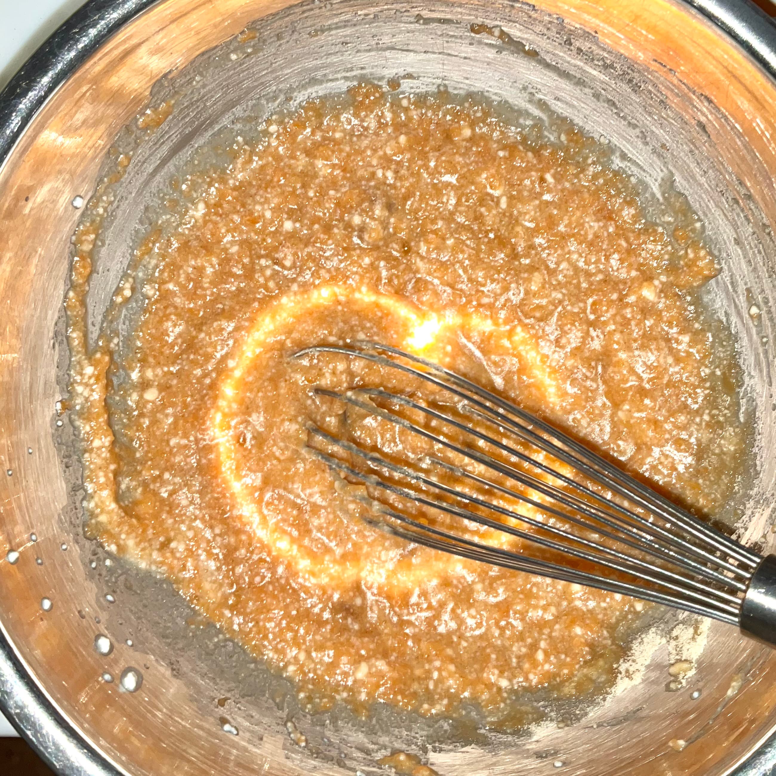 皮ごとすりおろした人参、砂糖を加えてさらによく混ぜる。