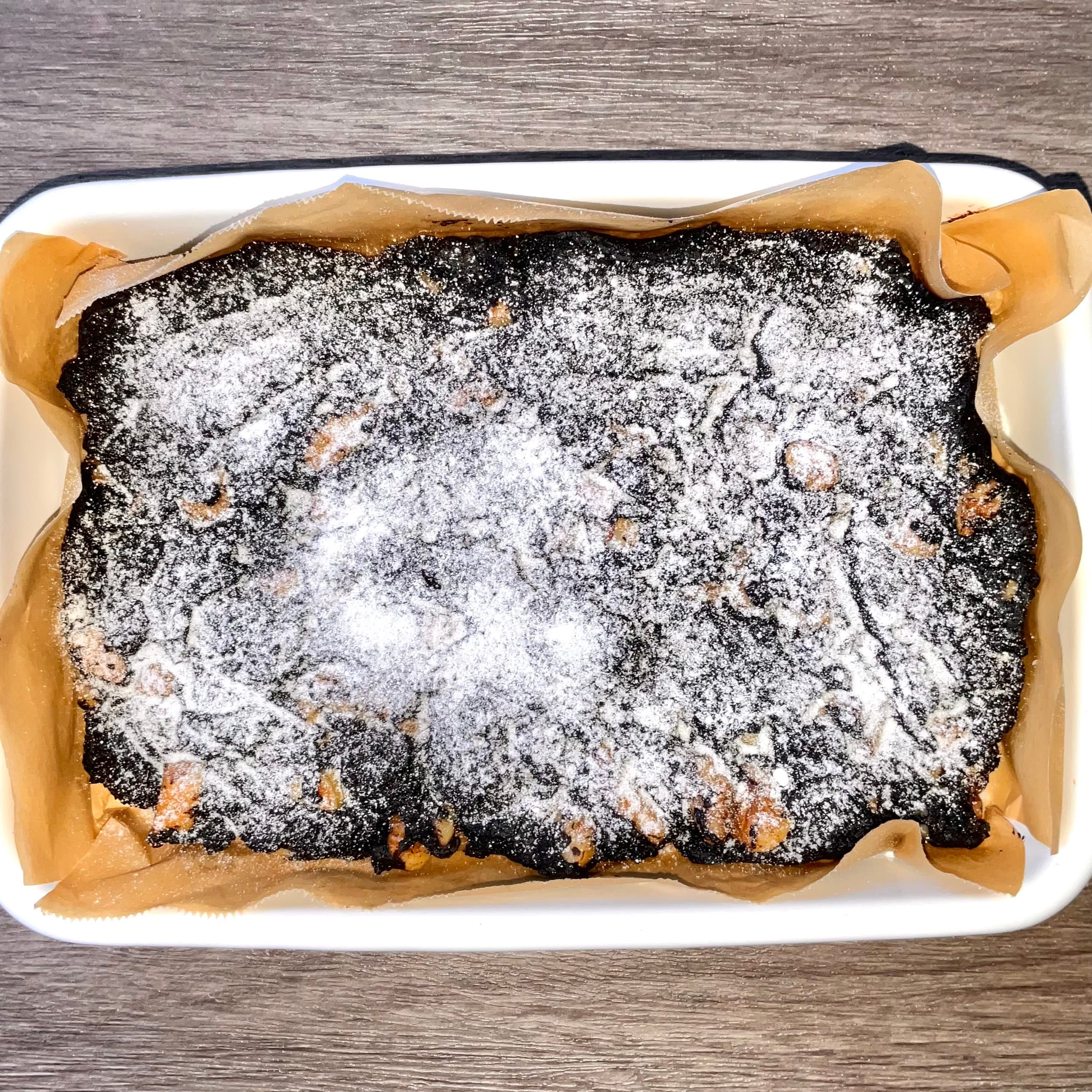 完全に冷めたら粉糖をふりかけ、切り分けてできあがり。