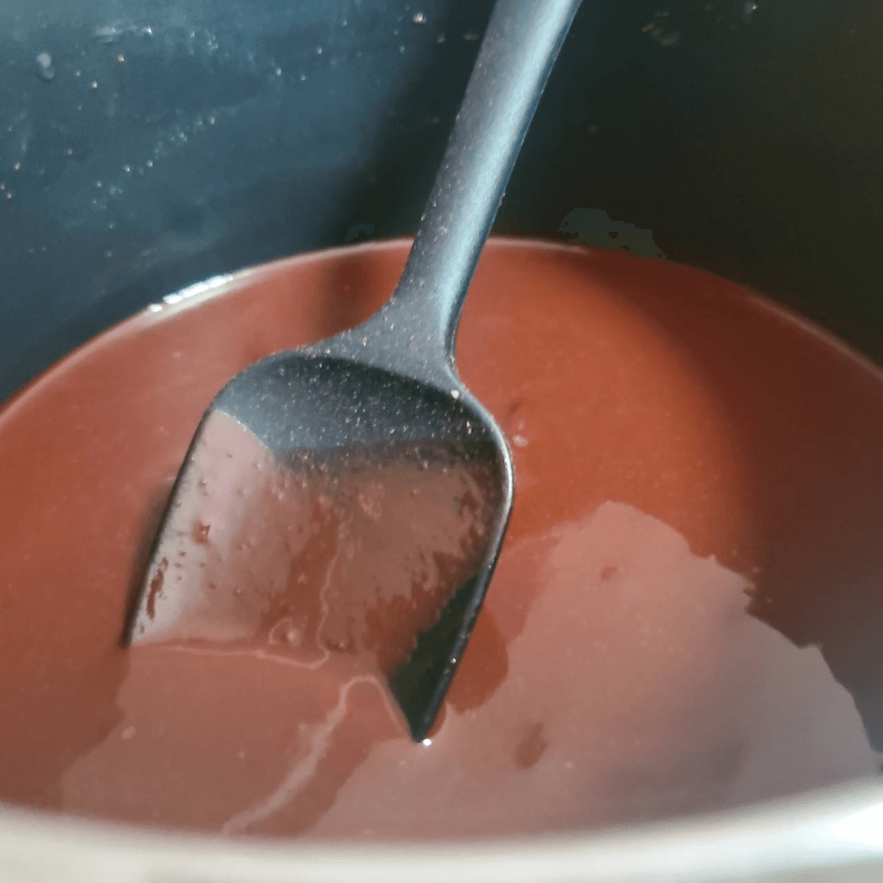 チョコレート材料の、カカオパウダー以外を合わせて火にかけ、溶かします。