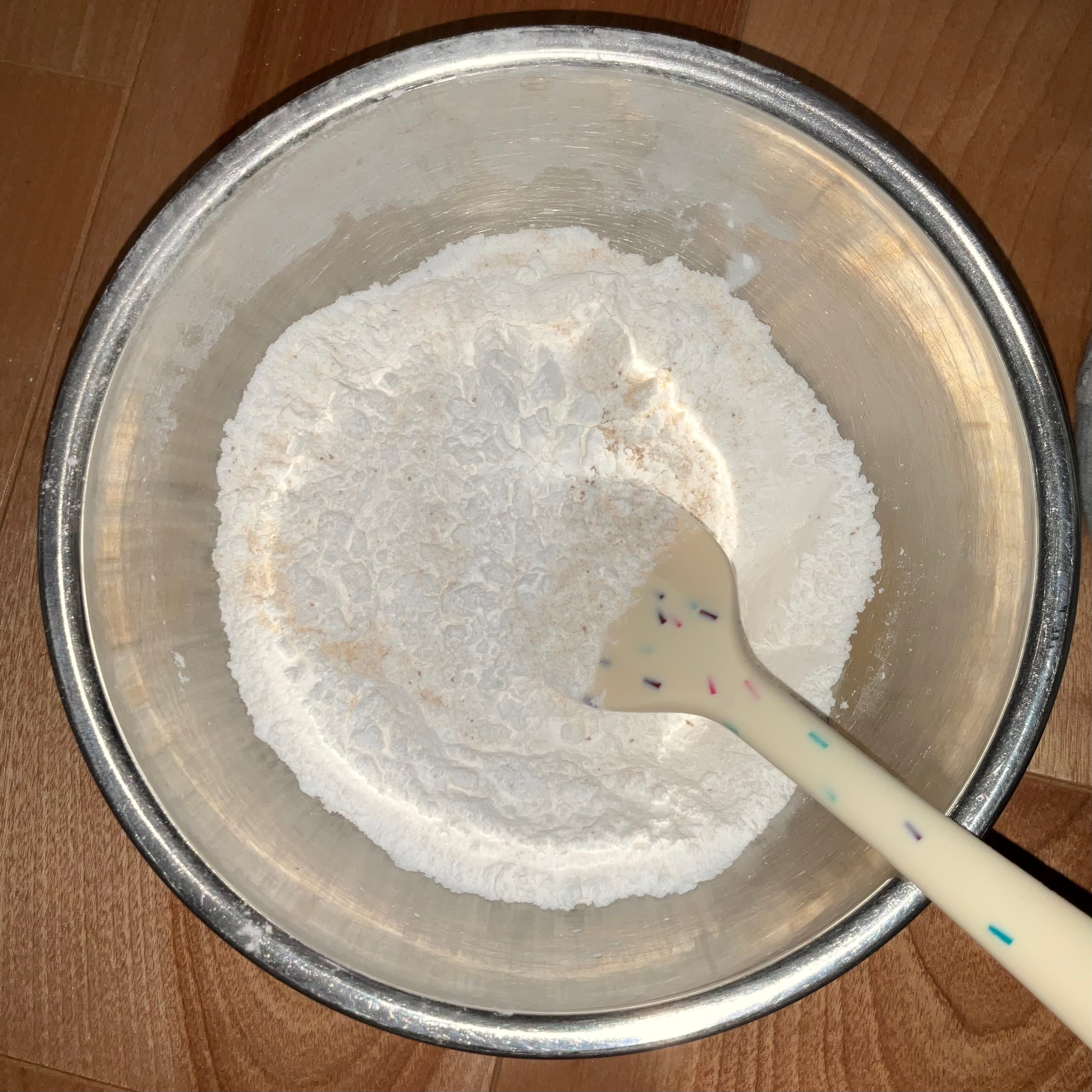 クッキングシートを8cm四方に4枚切っておく。ボウルにA.の粉類を入れ、混ぜ合わせておく。