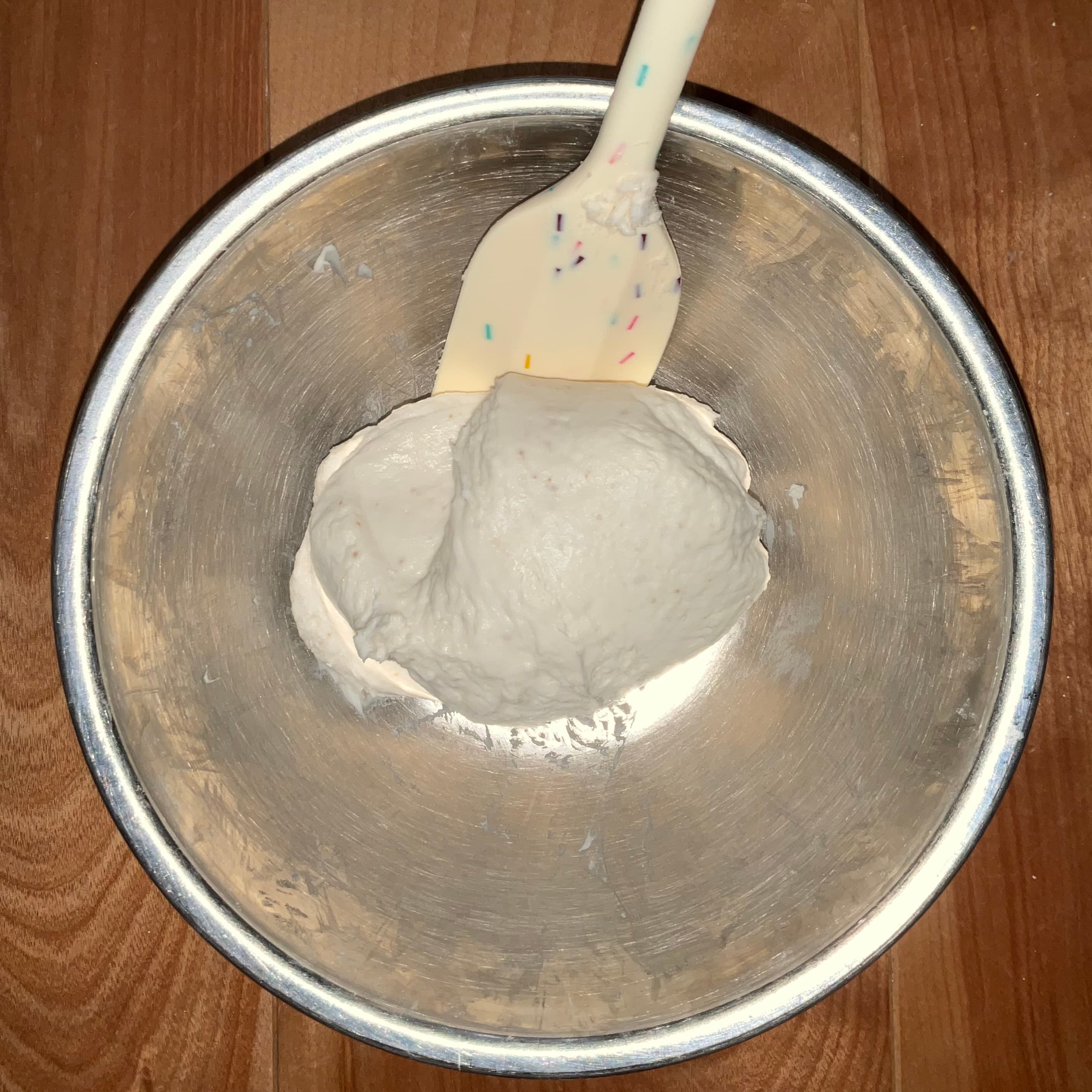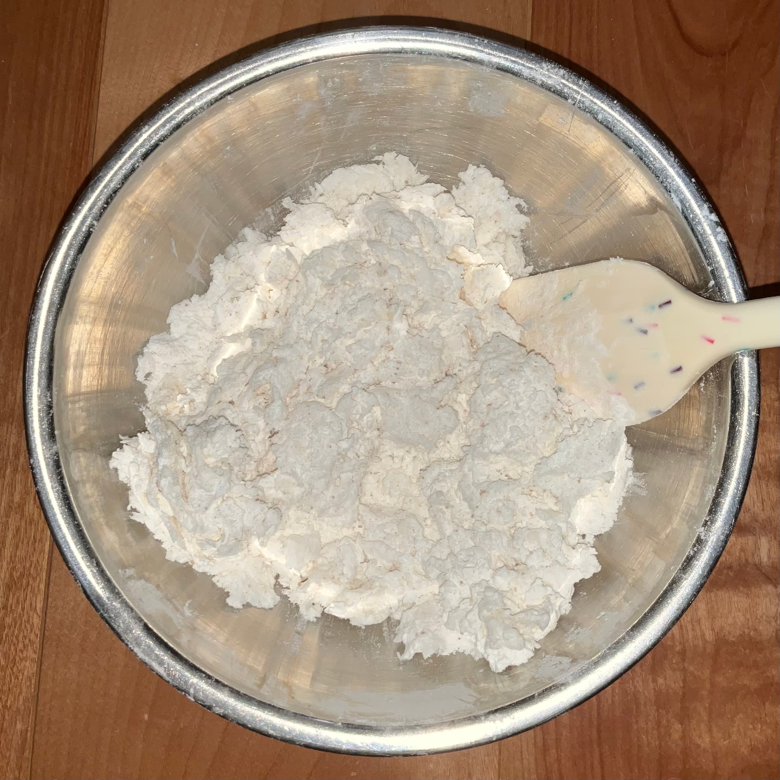 すりおろした長芋の大除いて1のボウルに加え、全体がそぼろ状になるまで混ぜる。