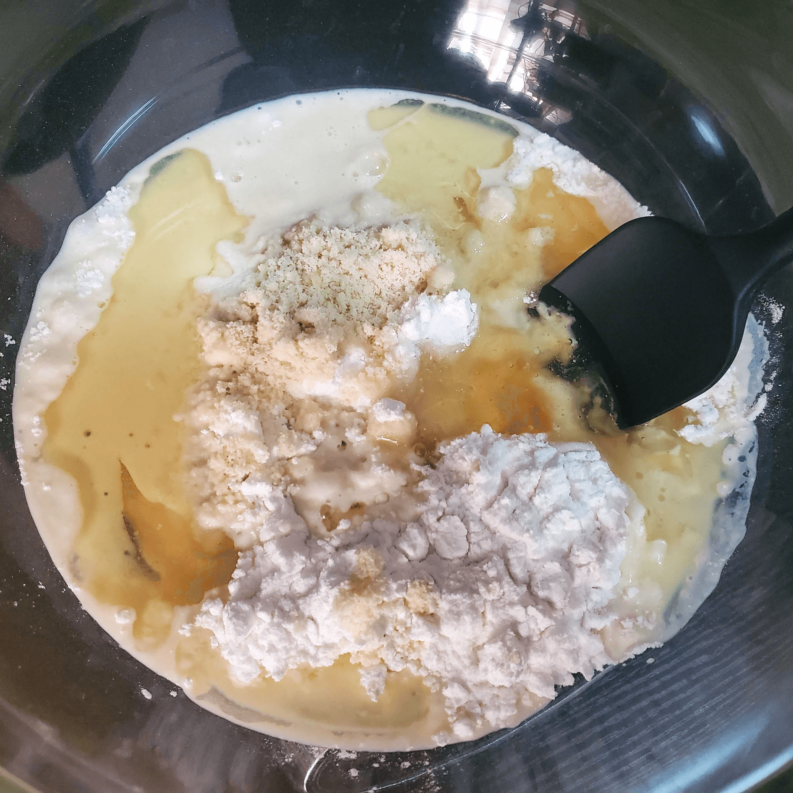 - 材料全て(りんごスライスとシナモン以外)を混ぜ合わせます。
