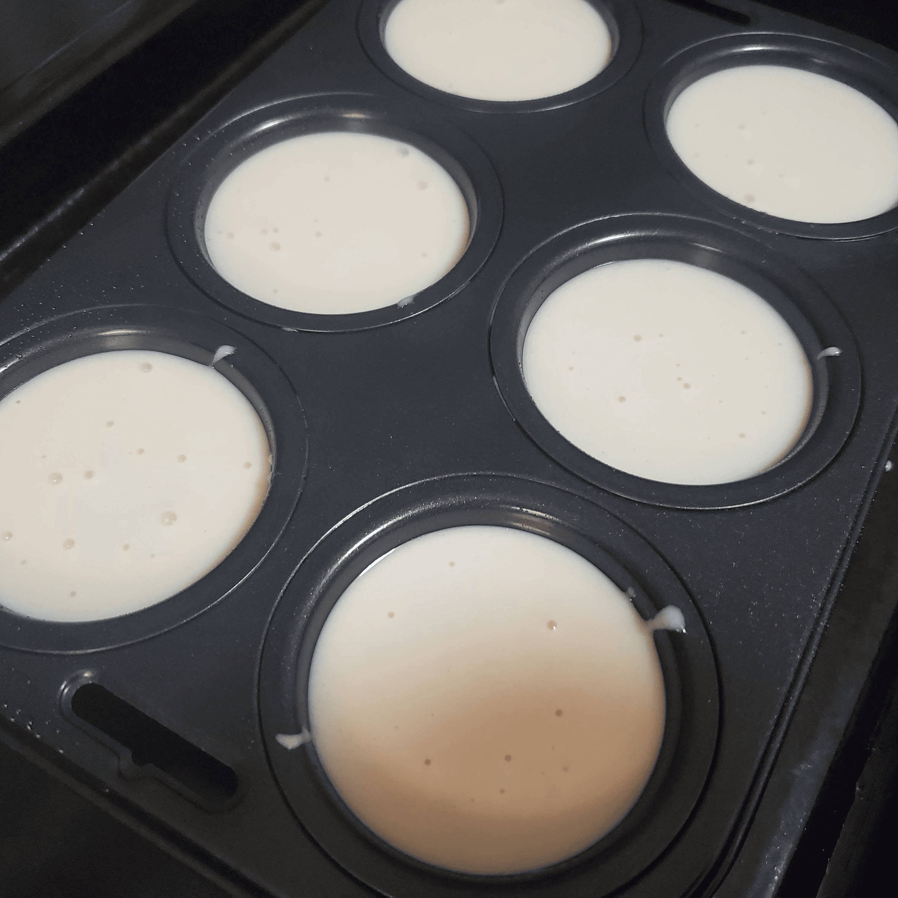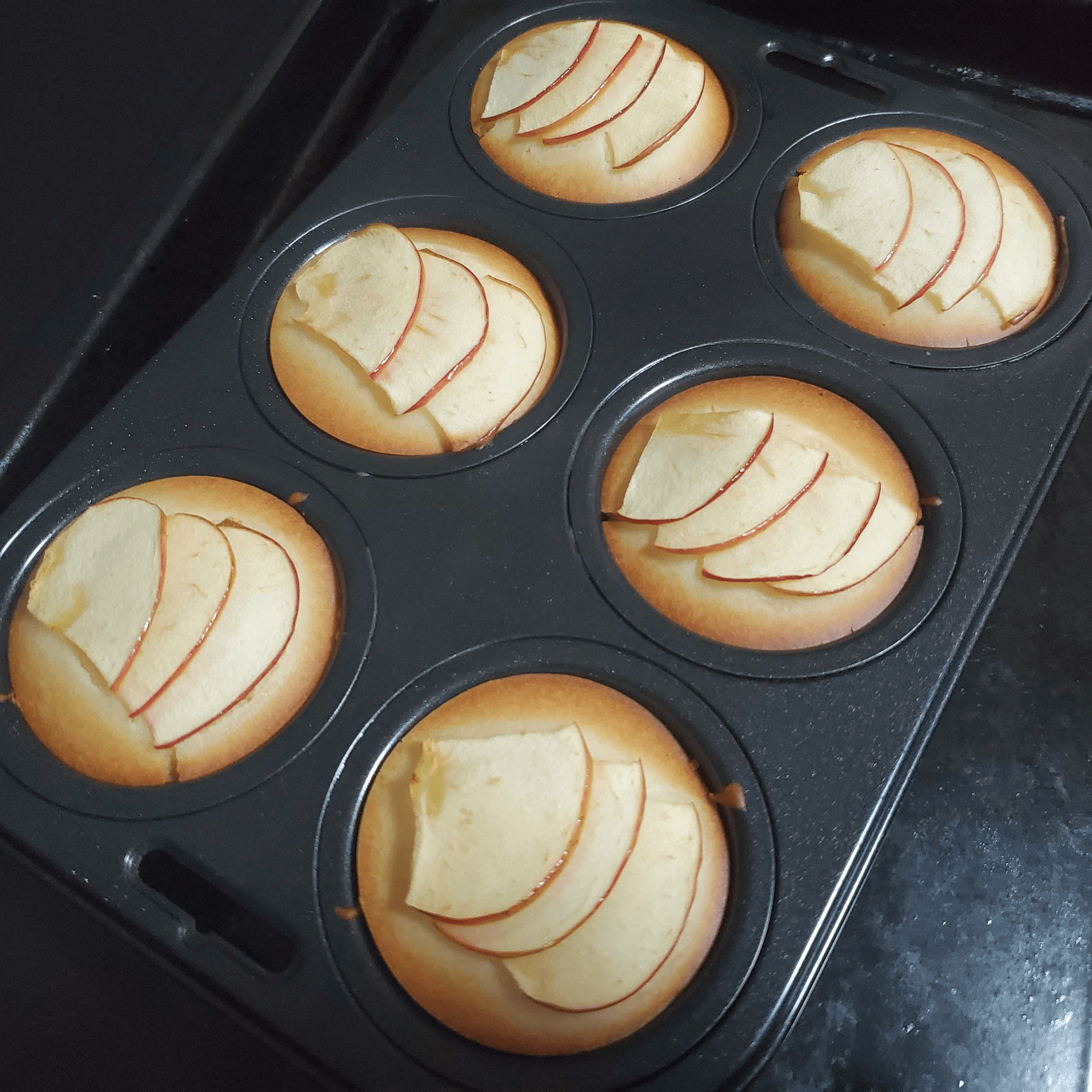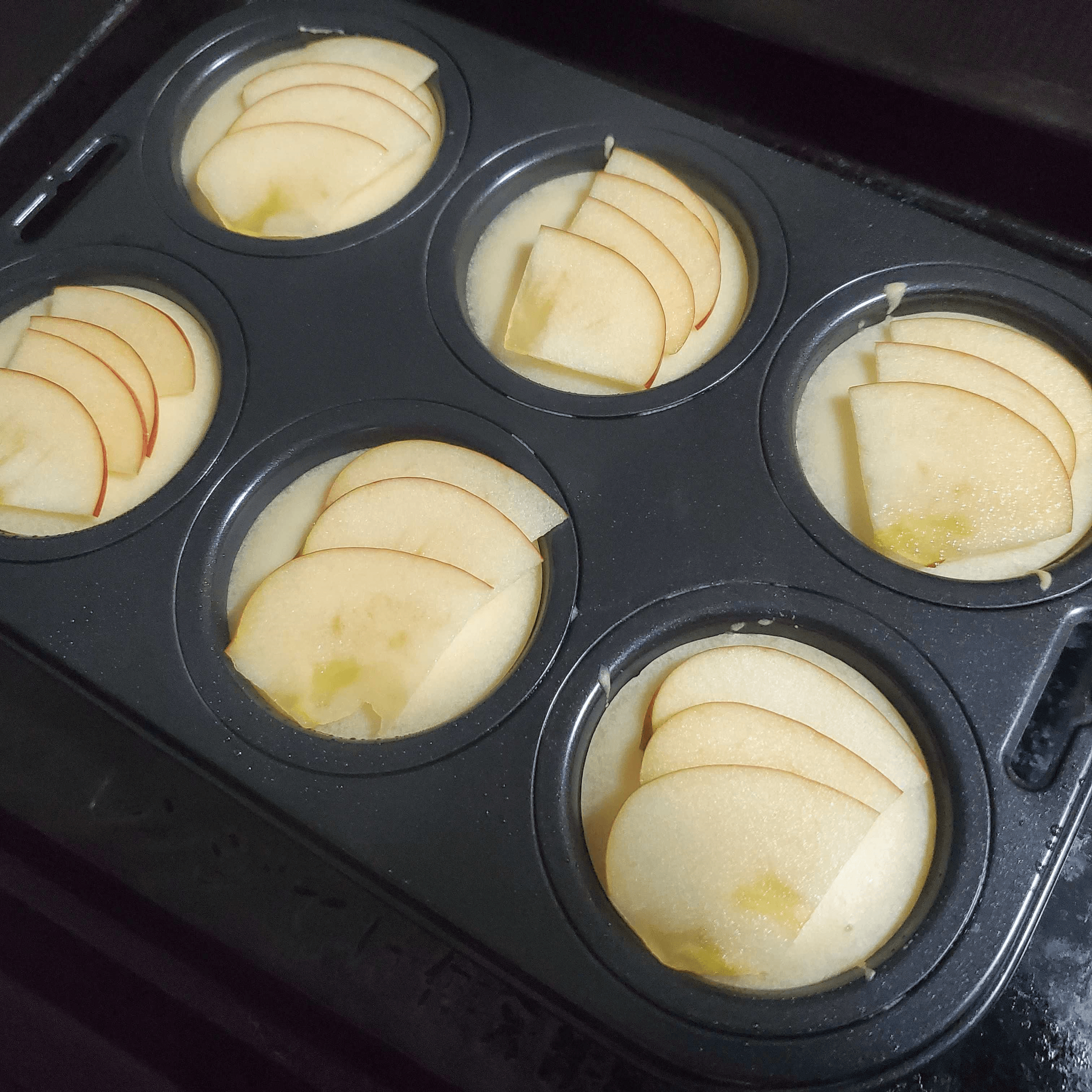 ・生地が少し柔らかめだったので、一度表面だけを少し焼いて固めてからりんごを乗せました。使う米粉やその他の材料によって生地の粘度は違ってくるので、りんごを乗せても沈まなそうであれば最初から乗せて30分ほど焼いても大丈夫だと思います。