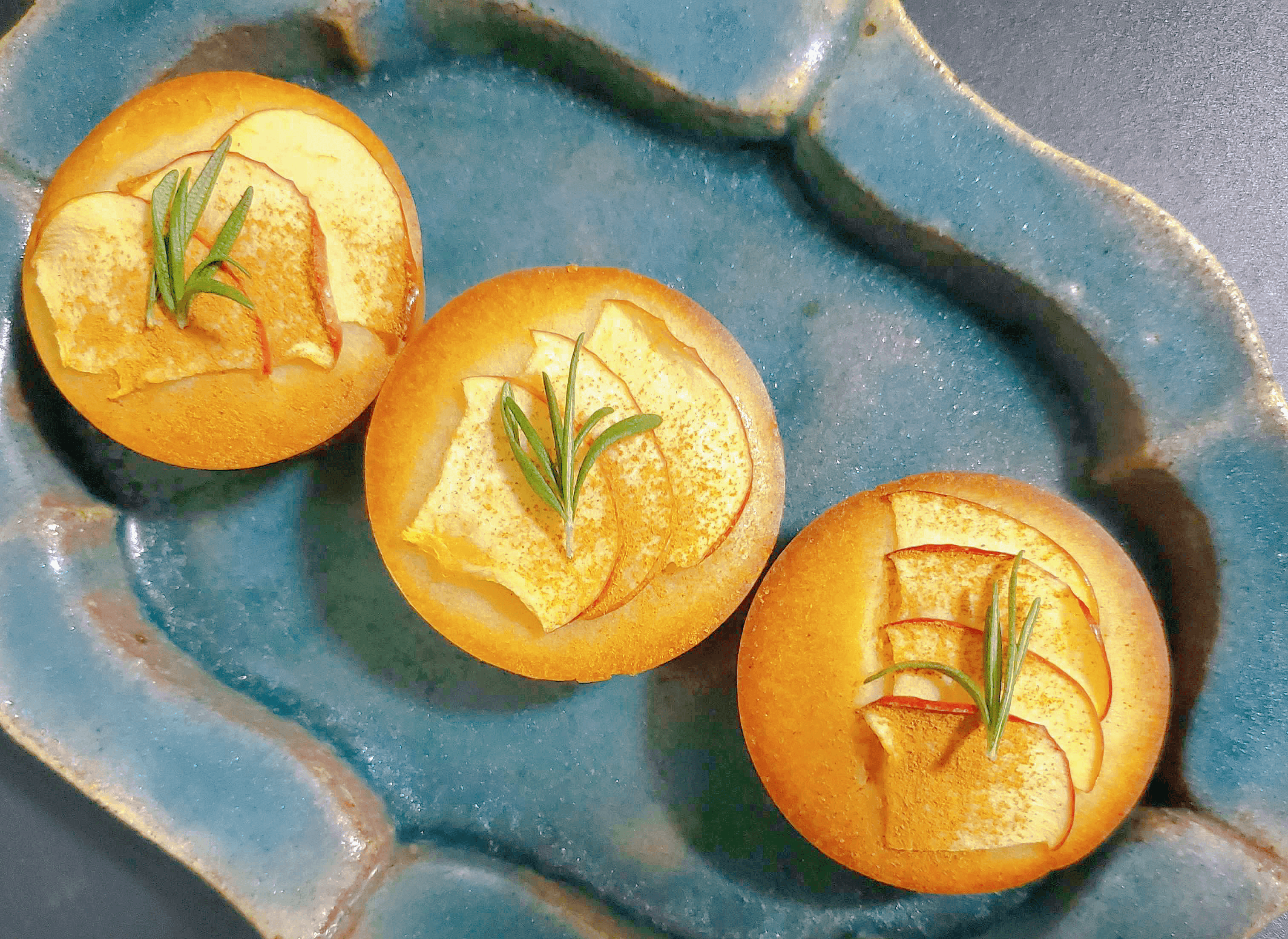 - 一度取り出して、スライスしたりんごを乗せたら再度180度のオーブンで20分ほど焼きます。