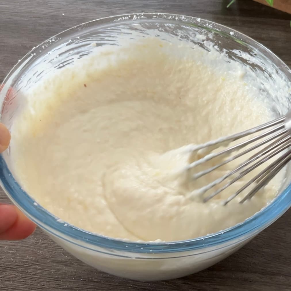 アーモンドプードル、米粉、レモンの皮の順に加え、その都度よく混ぜる。