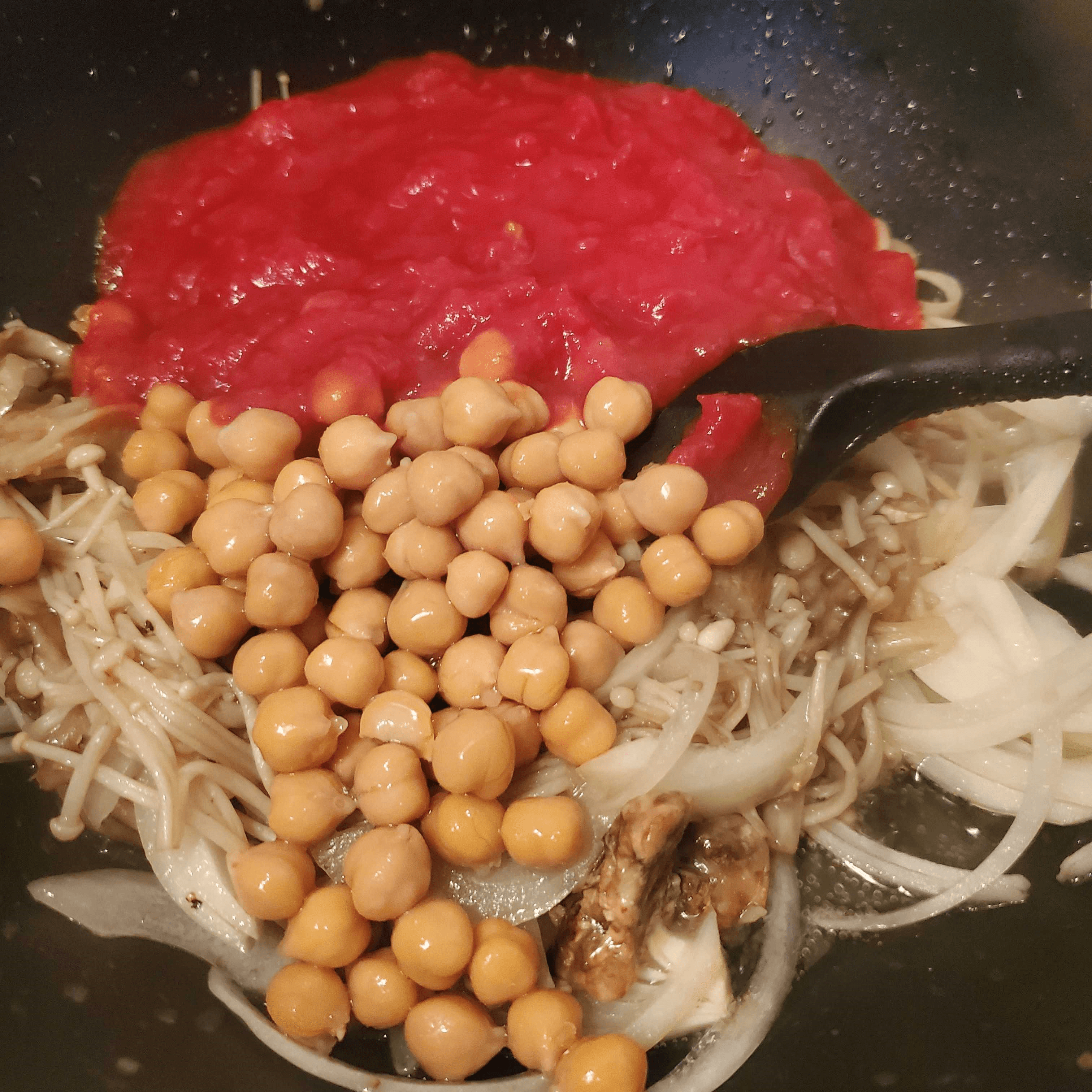 玉ねぎを加えて軽く炒めたら、残りの材料をすべて加えます。