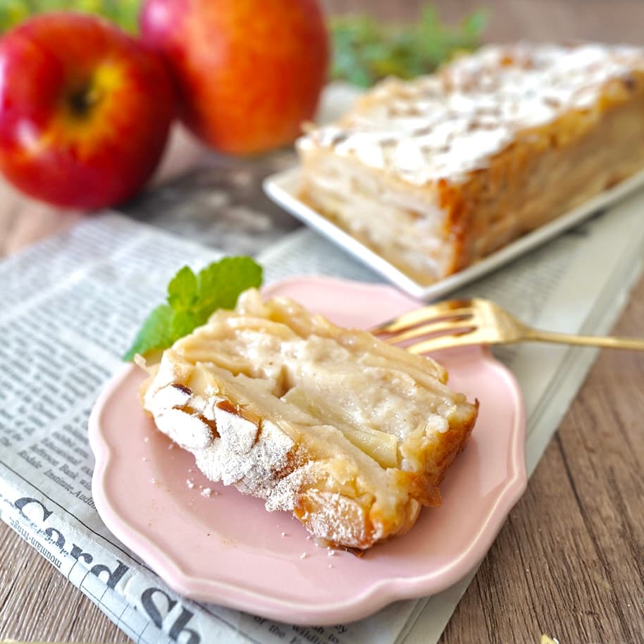 「ガトーインビジブル」はフランス発祥のスイーツで、フルーツや野菜をスライスして生地に重ね入れ、断面の層を楽しむケーキ。なかでも「リンゴのガトーインビジブル」は秋にぴったりの人気レシピです。しっとりした生地の中に、リンゴがまるでレイヤーのように並び、カヌレのようにもっちりとした食感が特徴。見た目も美しく、ティータイムや手土産にもぴったりです。