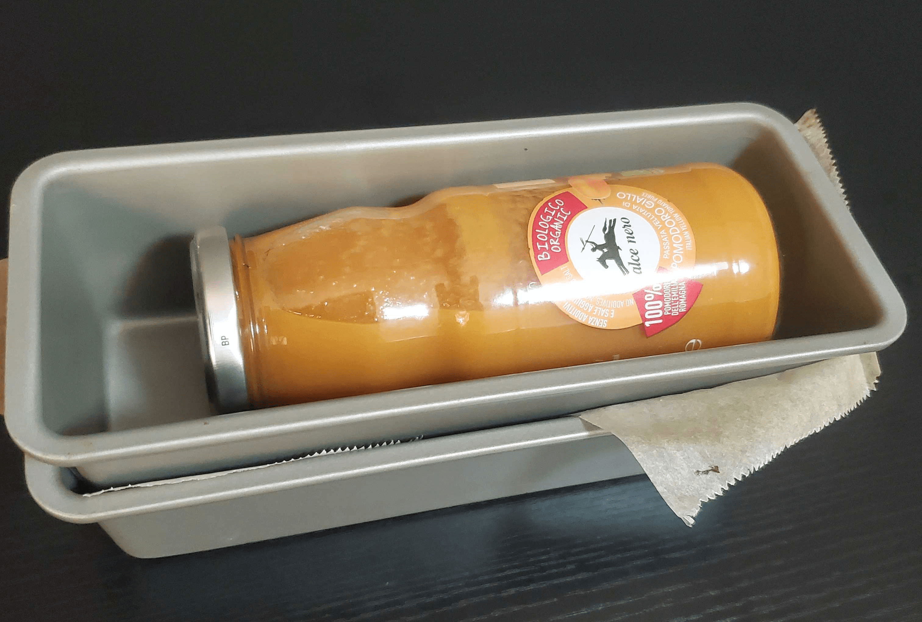 焼き上がったら重しをして完全に冷えるまで冷蔵庫で休ませます。