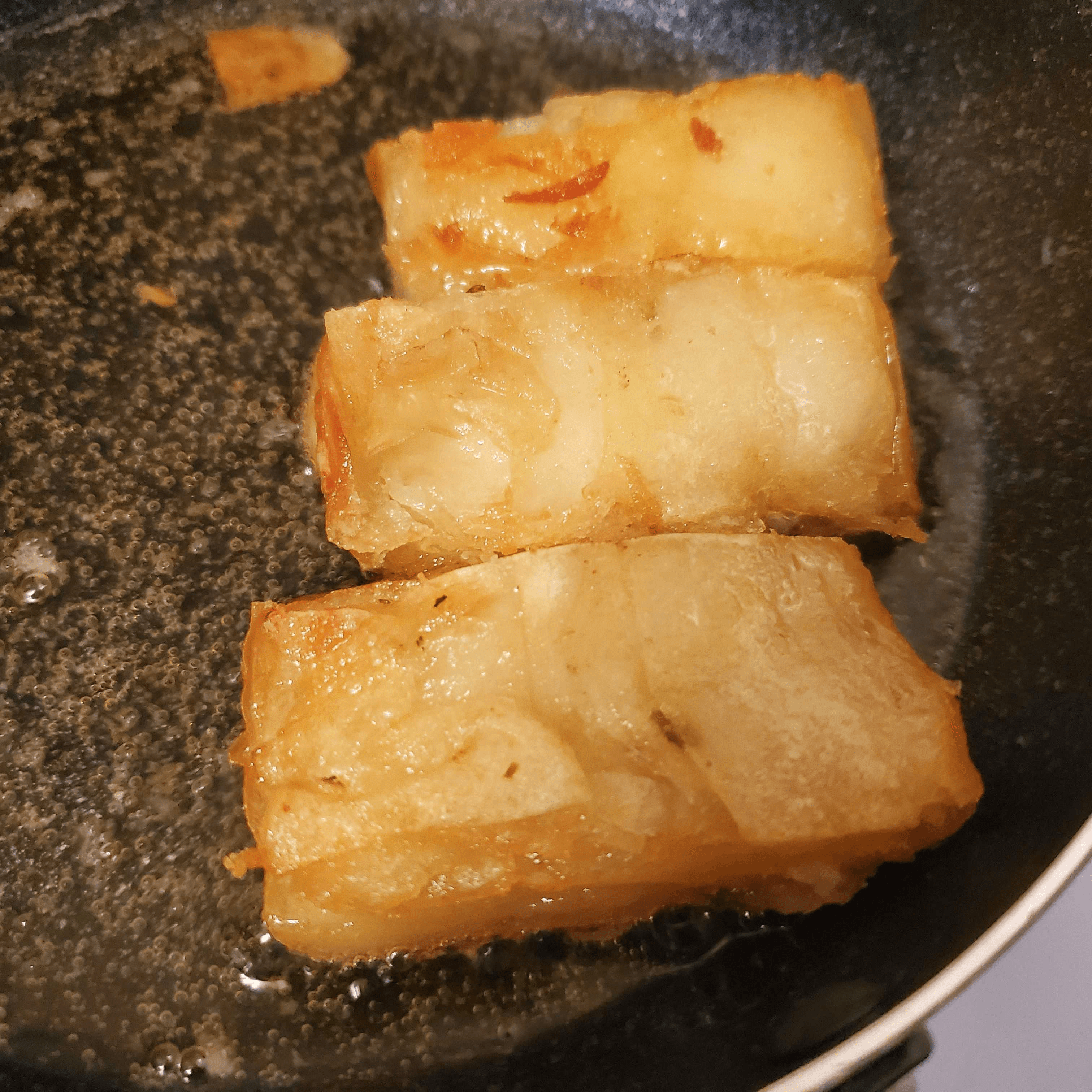 フライパンに多めの油を敷いて黄金色になるまで揚げ焼きします。