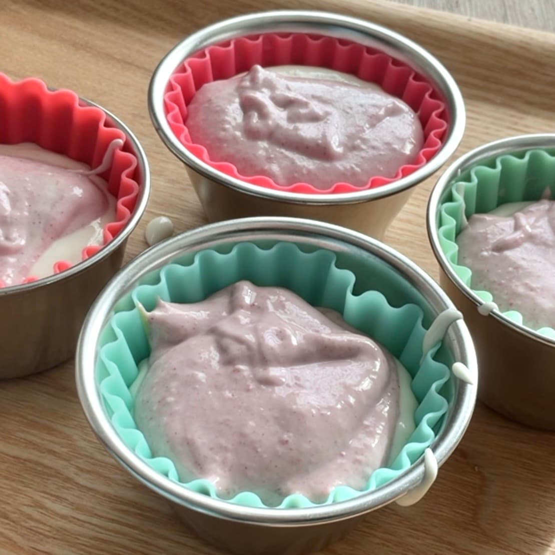 残った生地にイチゴパウダーを混ぜ、最後に重ねます。