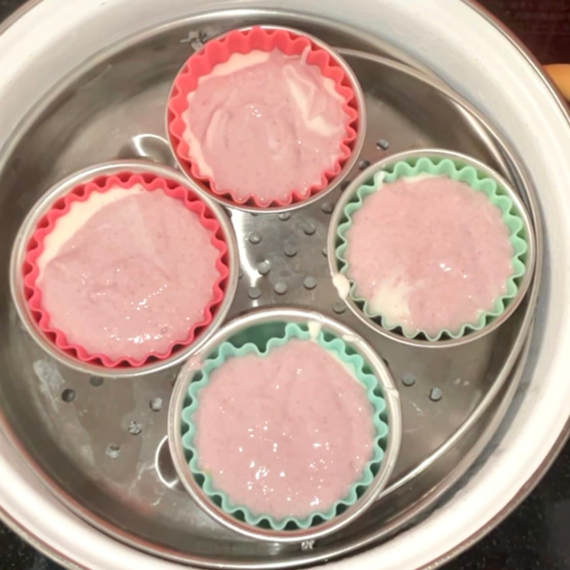 ・材料はすべて計量しておく ・抹茶は茶こしでふるう ・蒸し器は事前に火にかけ、蒸気を上げておく ・シリコンカップは型に入れて安定させる