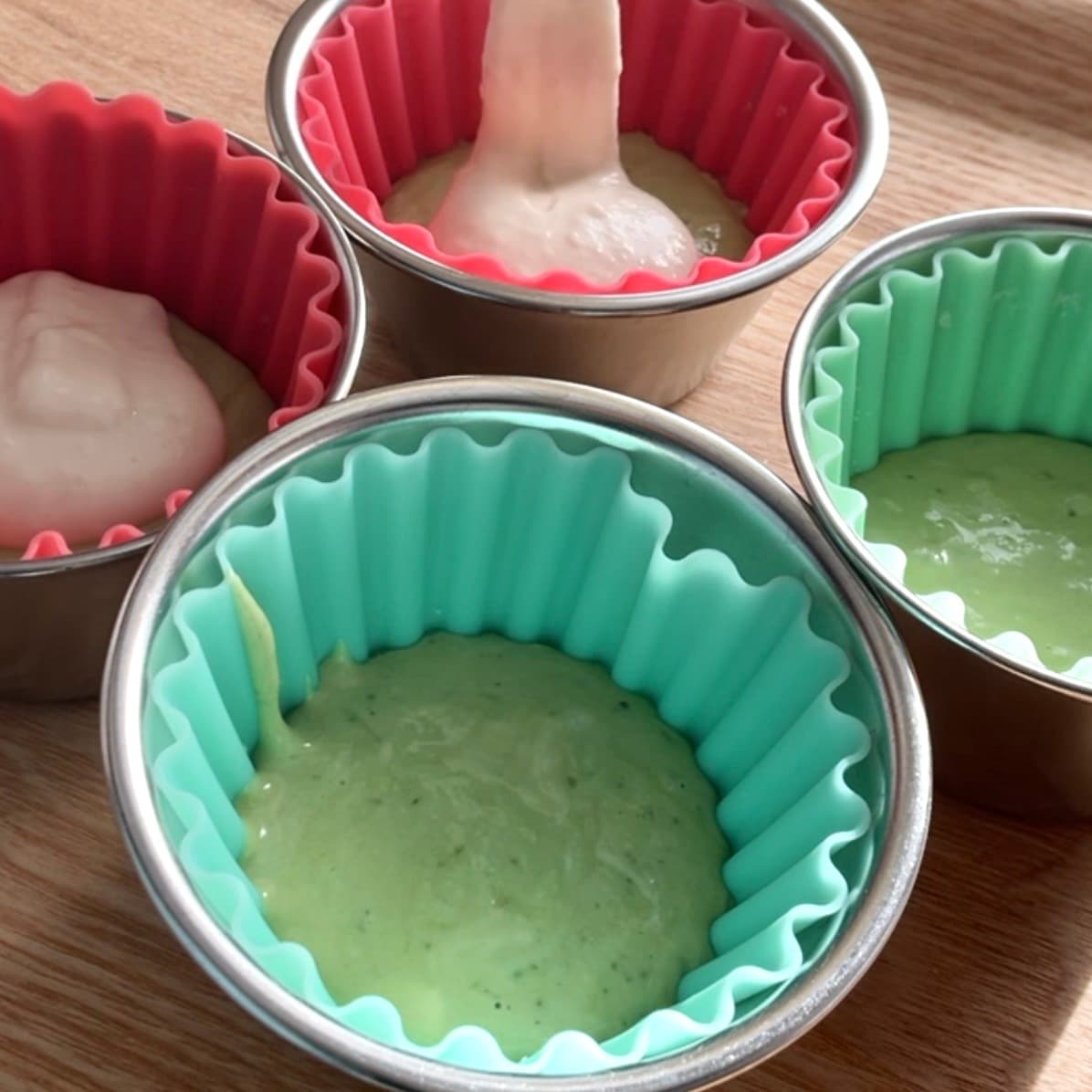 型に抹茶生地を入れます。