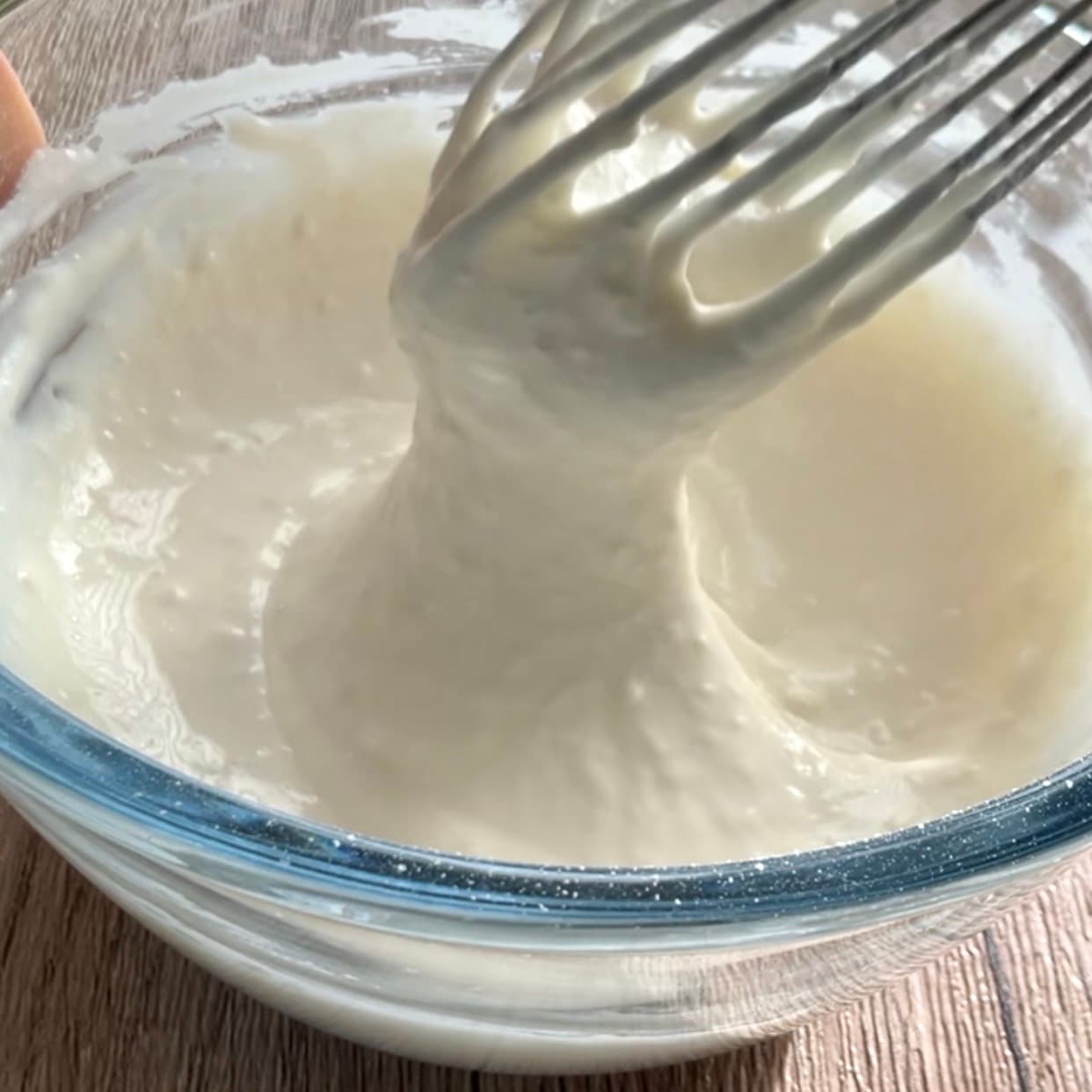ボウルに甘酒と豆乳を入れて混ぜ、米粉を加えてなめらかになるまで混ぜます。