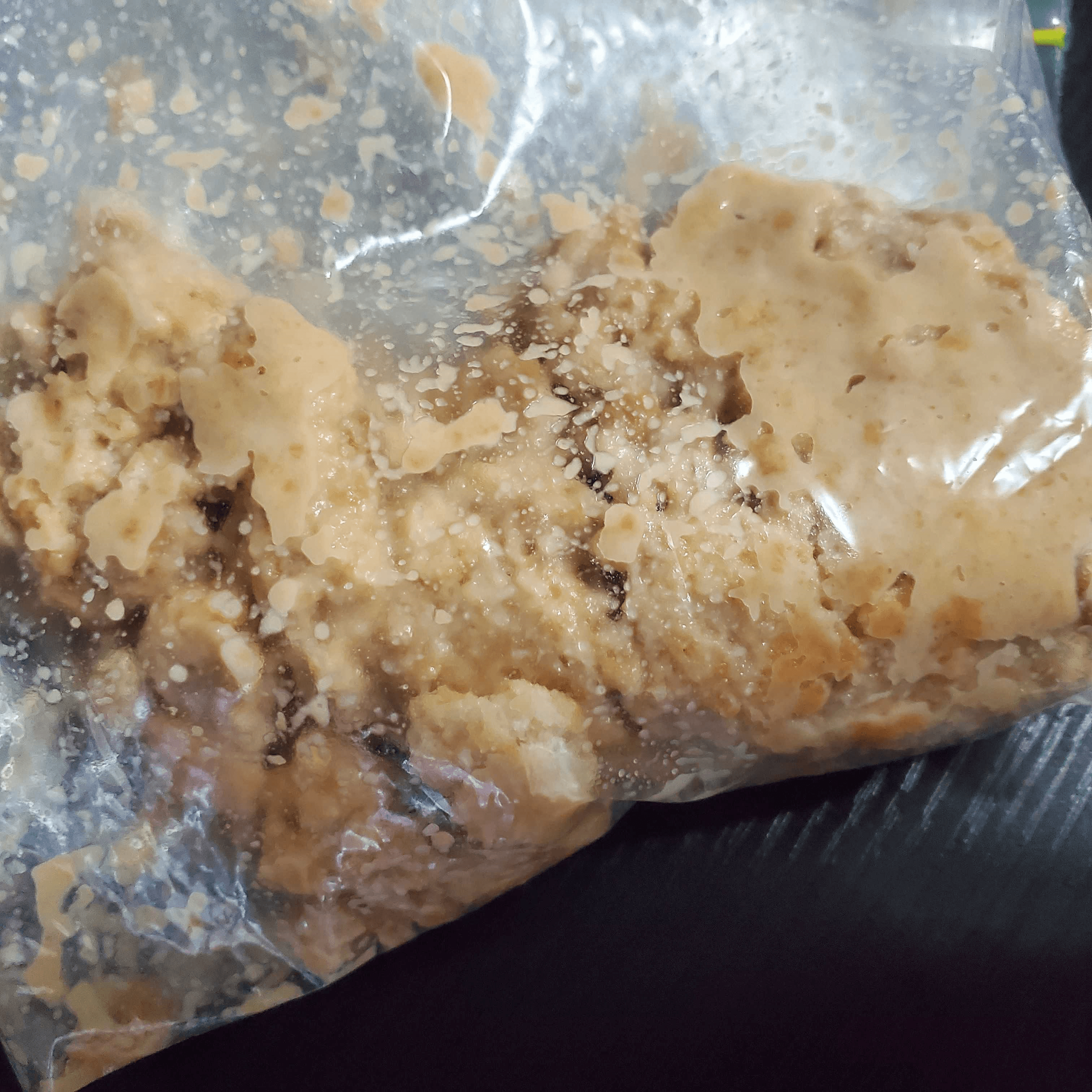 クッキーを砕いて豆乳と合わせてクラストを作ります。できたものはケーキ型の底に詰めます。
