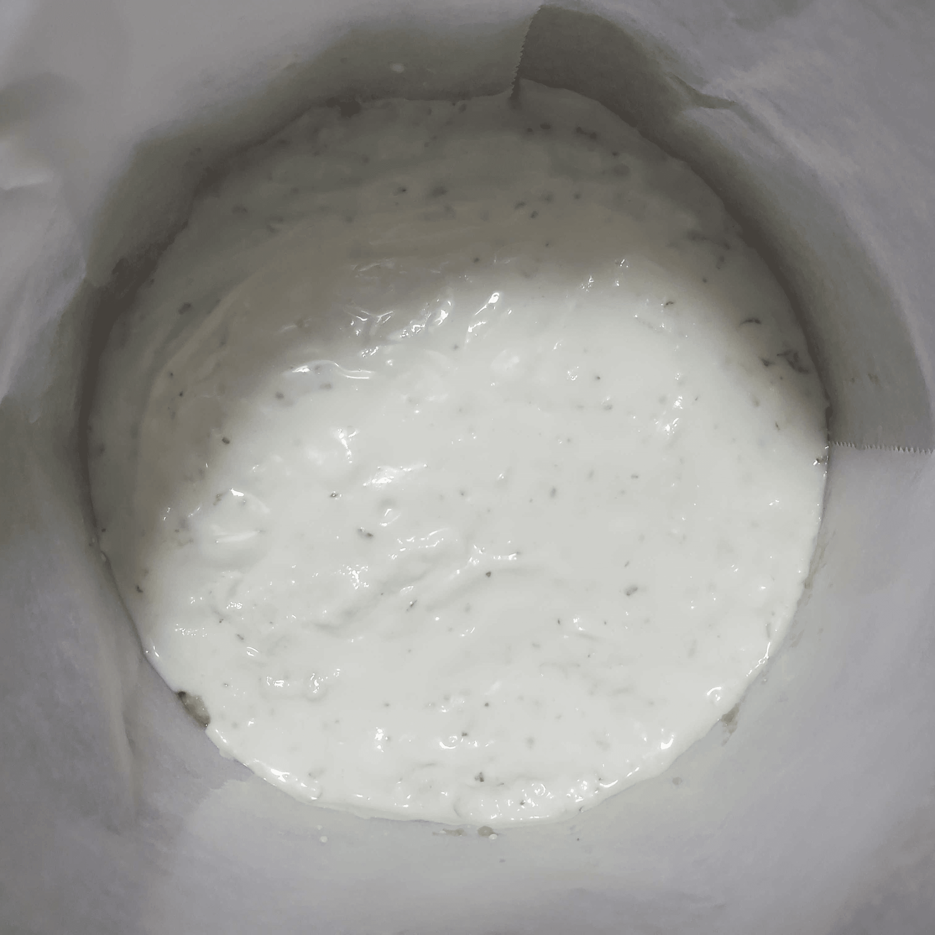 クラストを敷いたケーキ型にフィリングを流し込み、冷蔵庫でしっかり冷やし固めます。