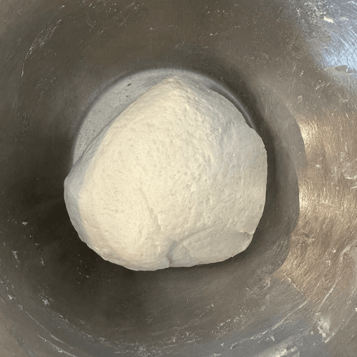 ひとつにまとめて表面を滑らかにし、乾燥させないようビッチリとラップをして35℃で30分発酵させる。生地がひとまわり大きくなる。