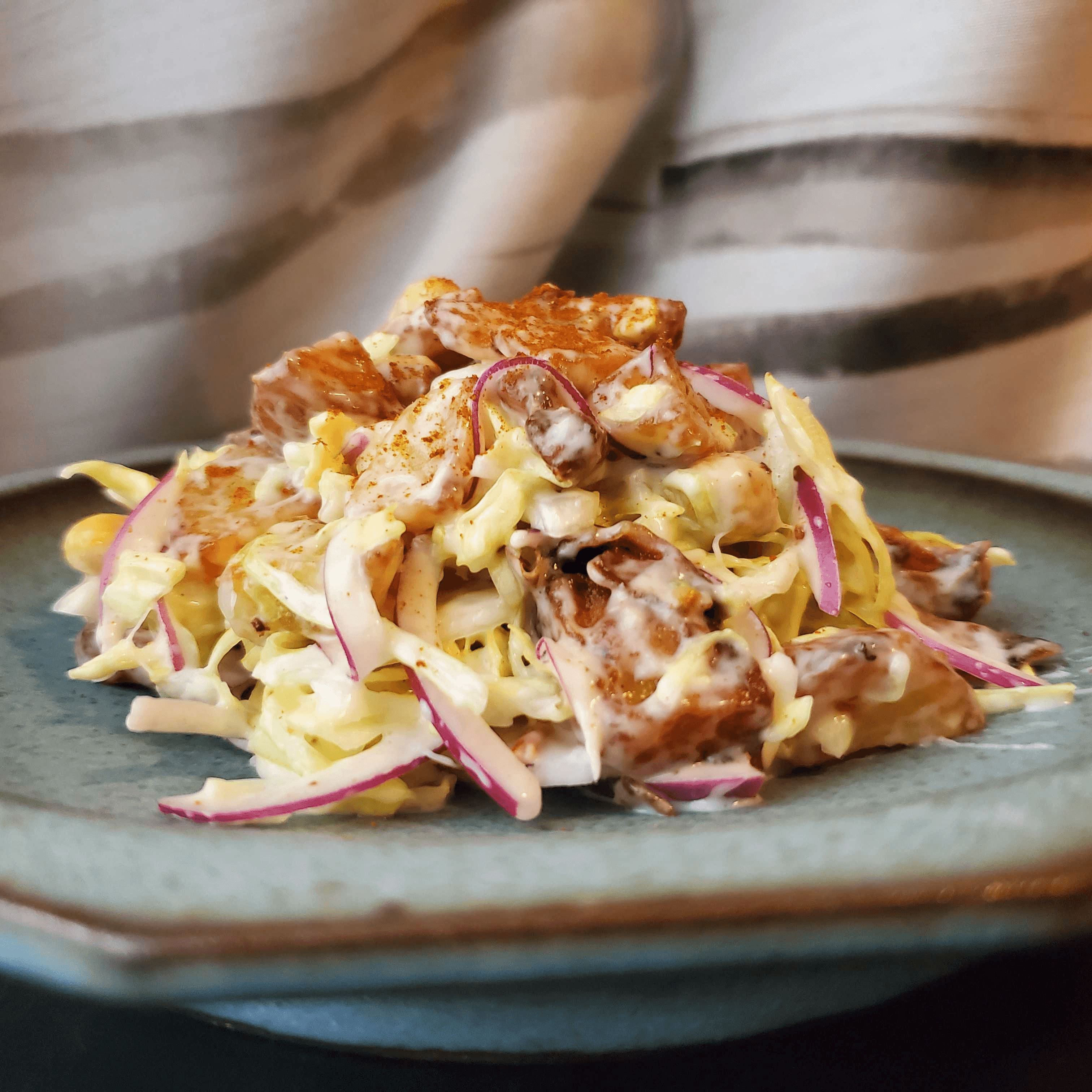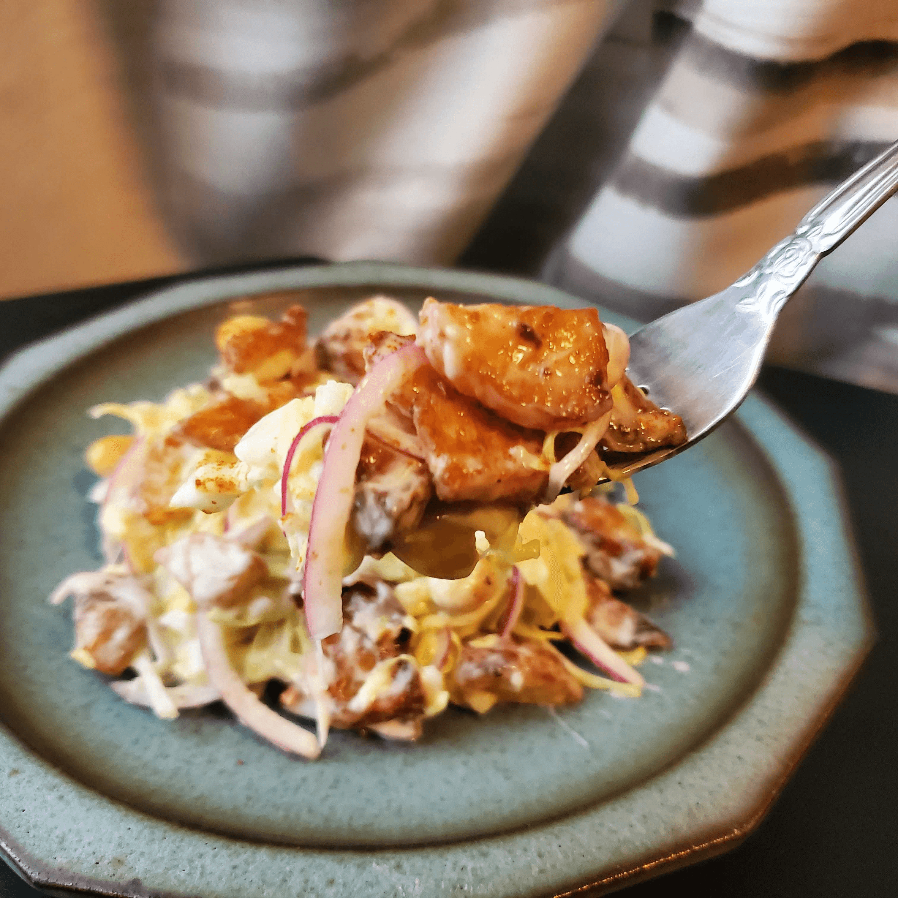 - 盛り付けて、仕上げにチリパウダーをお好みで振って完成です。