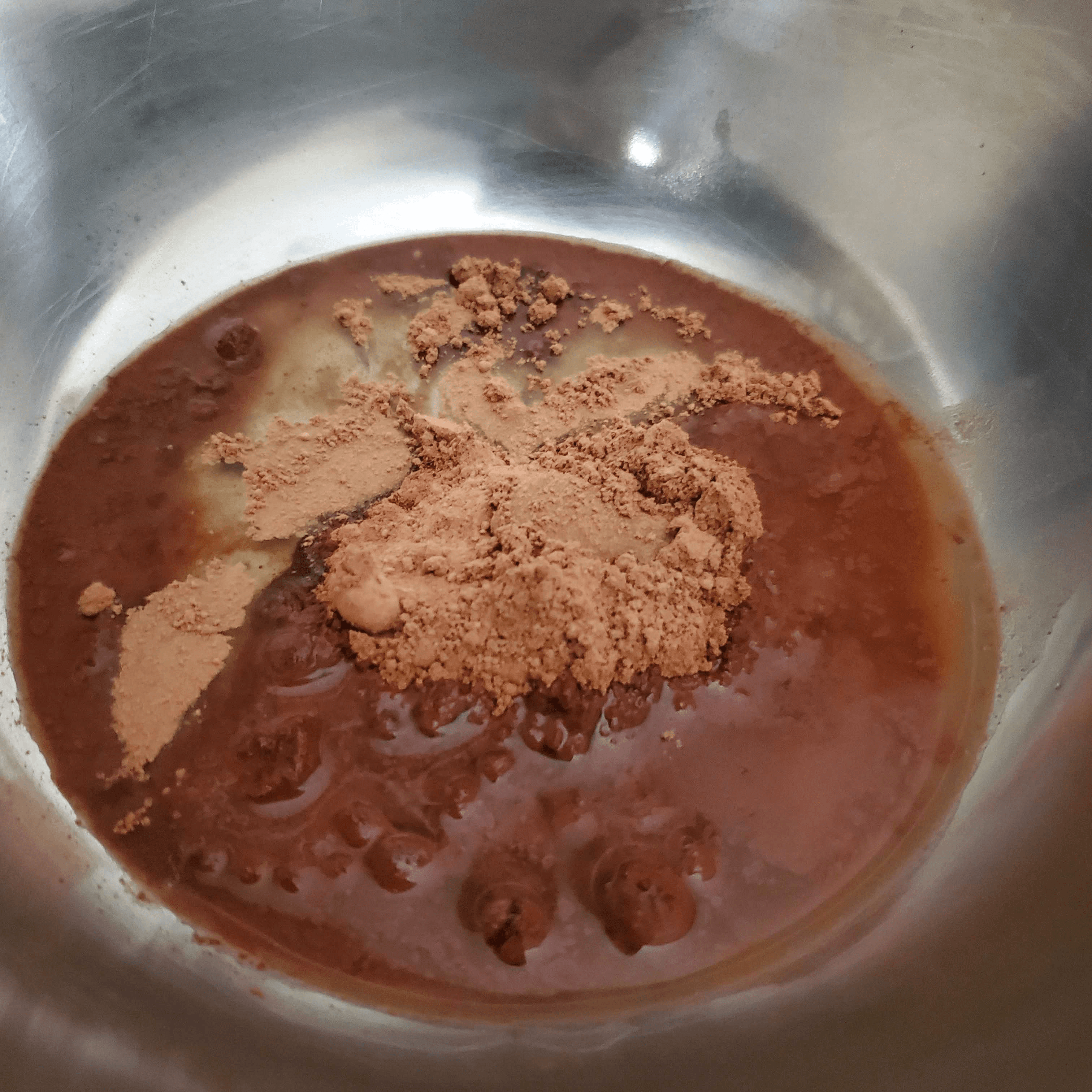 カカオパウダーと熱湯とアガベシロップを混ぜ合わせます。