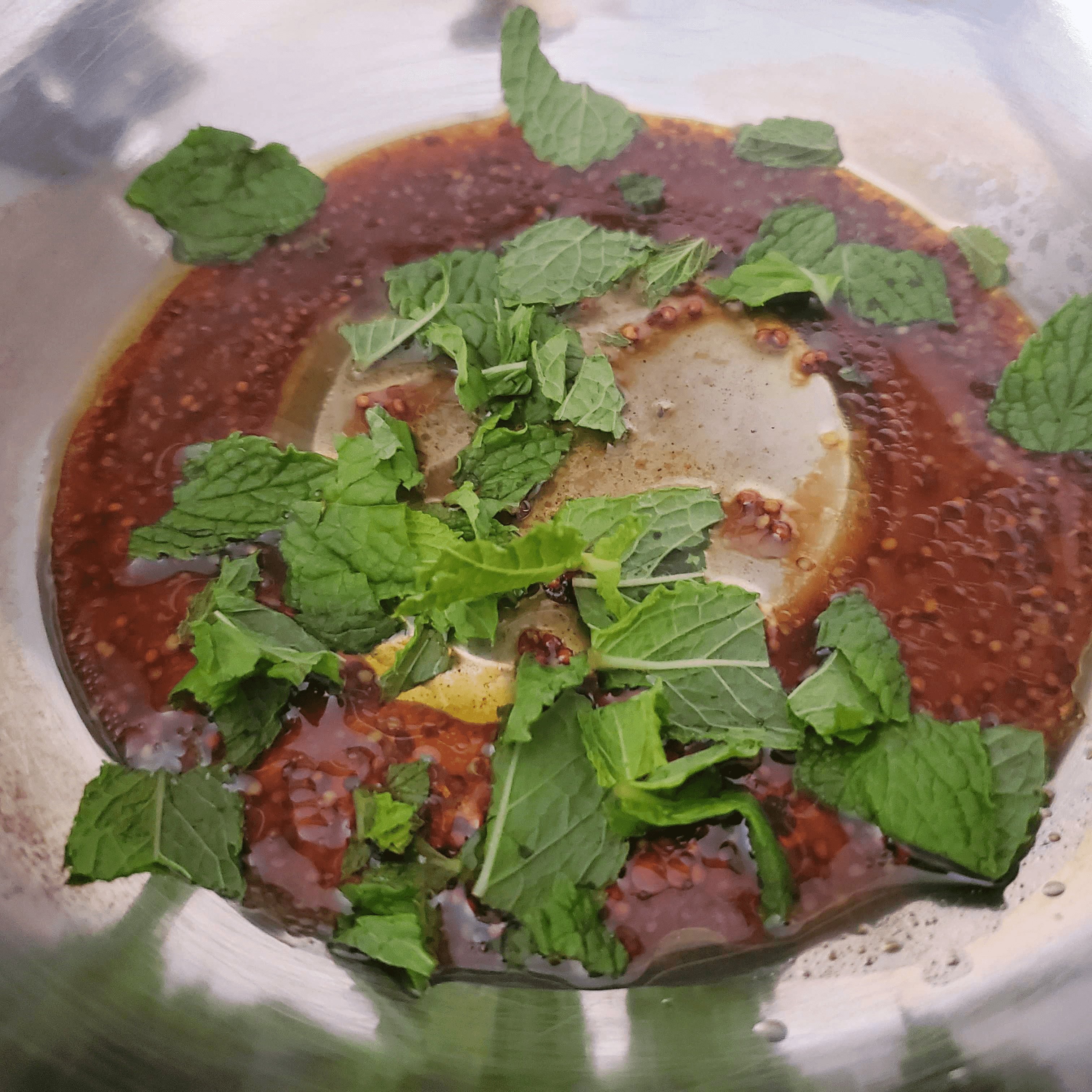 調味料を混ぜ合わせます。ミントは手でちぎります。
