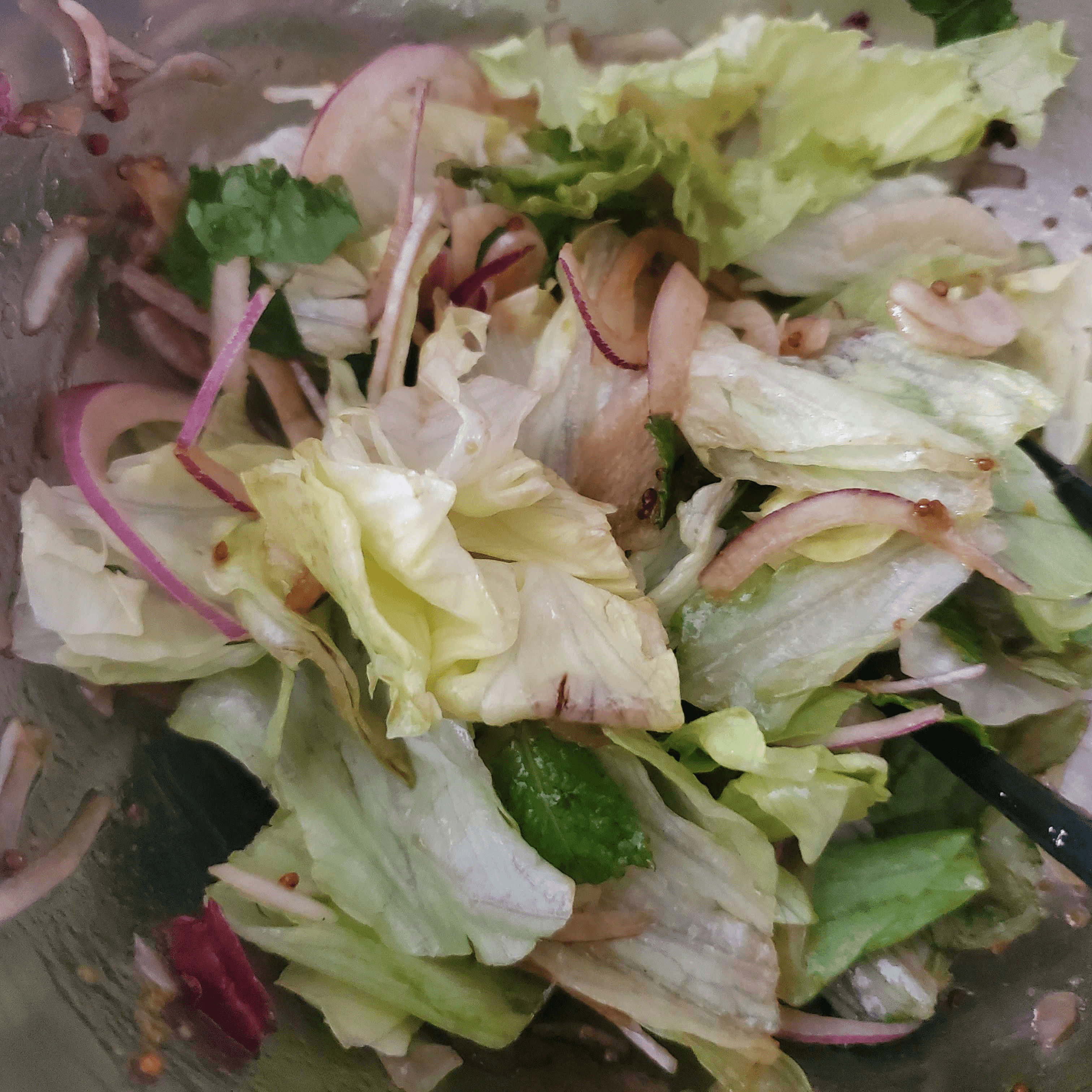 - 葉野菜とオニオンスライス合わせて
